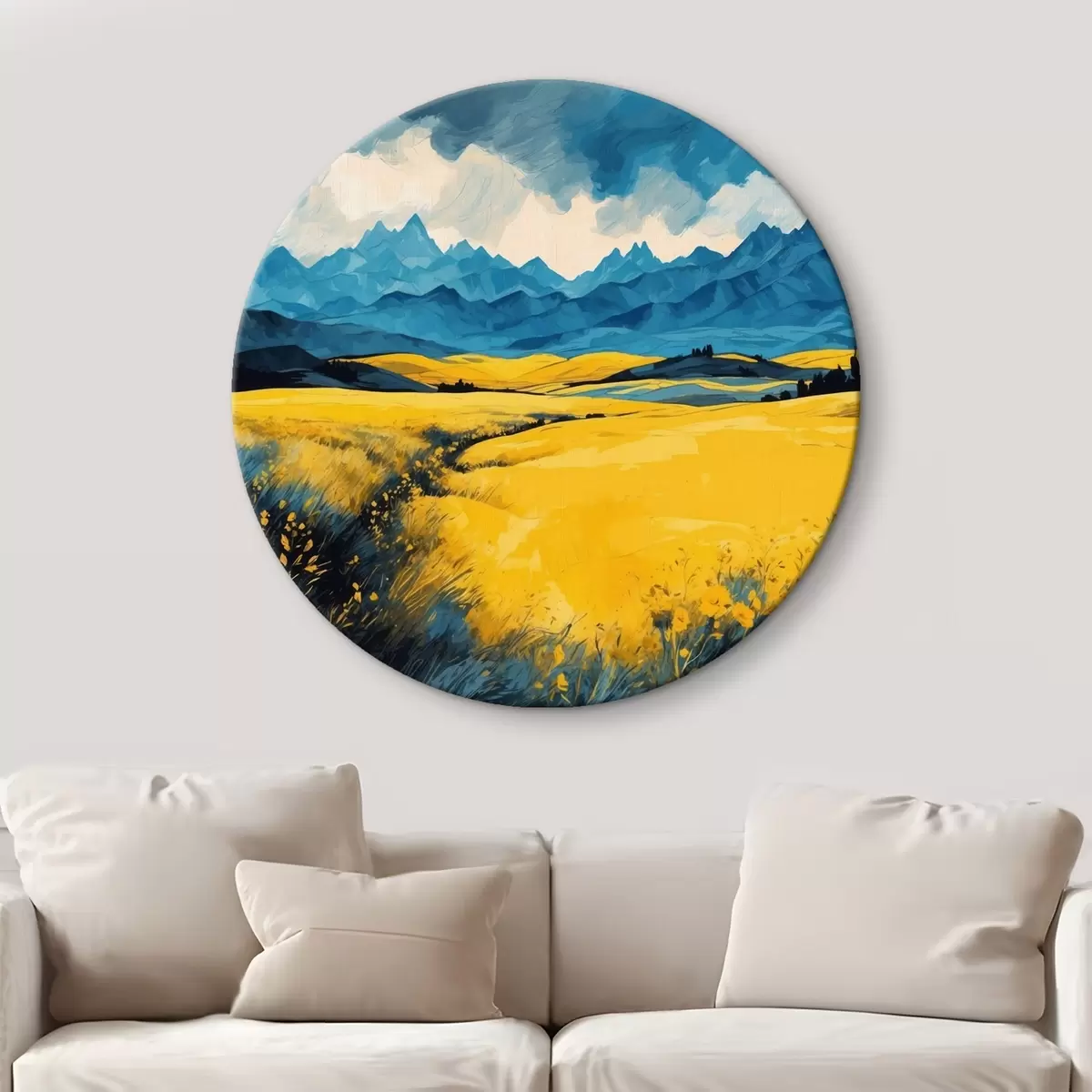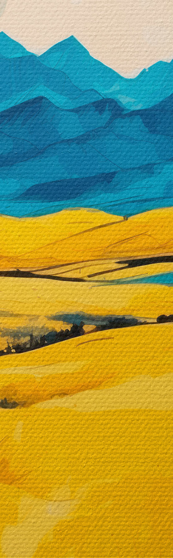 Obrázok Žlté pole na pozadí hôr v akvarelovom štýle Nr r43117