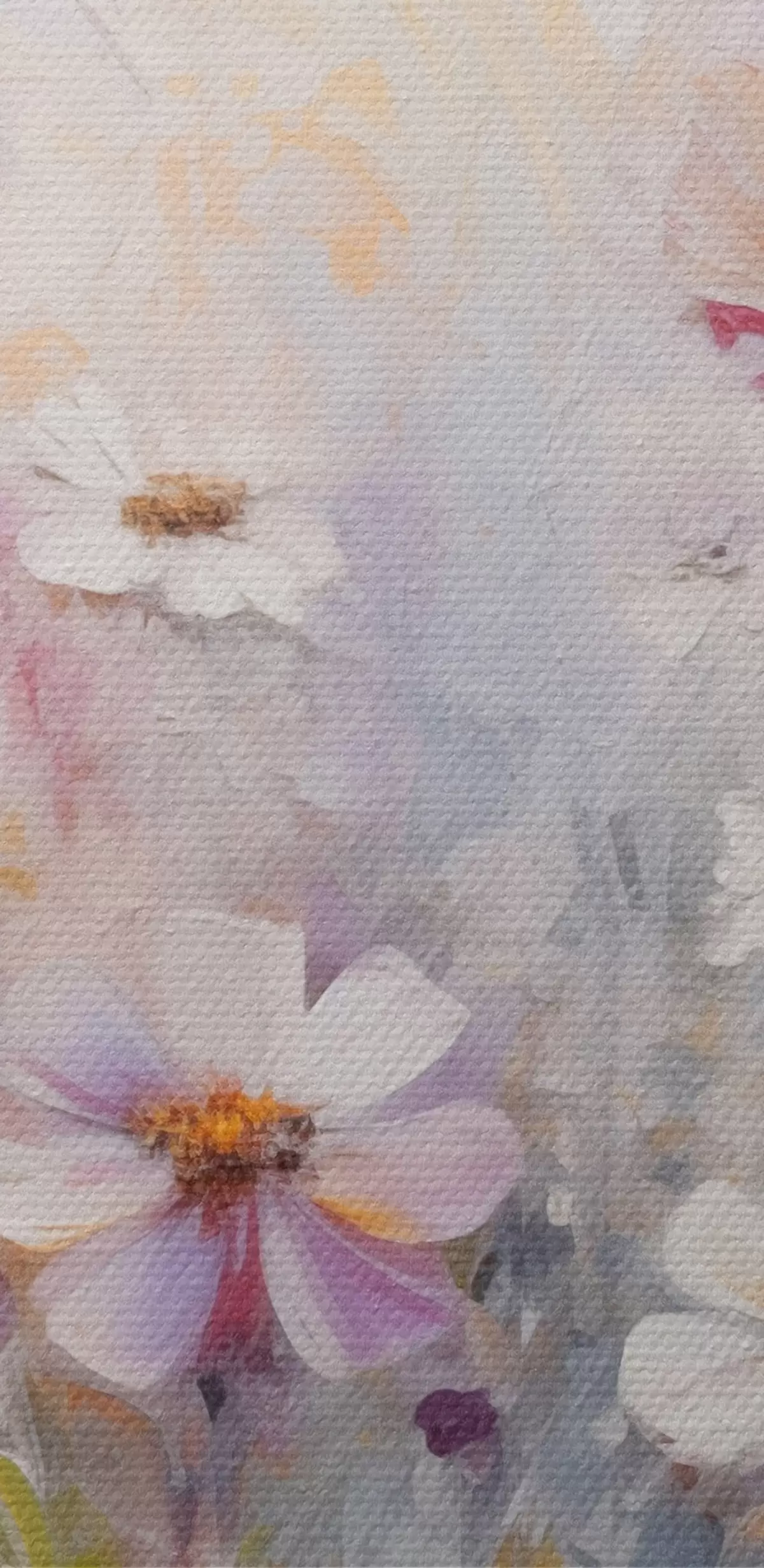 Obrázok Abstraktné textúrované pole bielych a ružových kvetov, jemné pastelové farby, jemné ťahy štetcom, kvetinová lúka Nr r43170