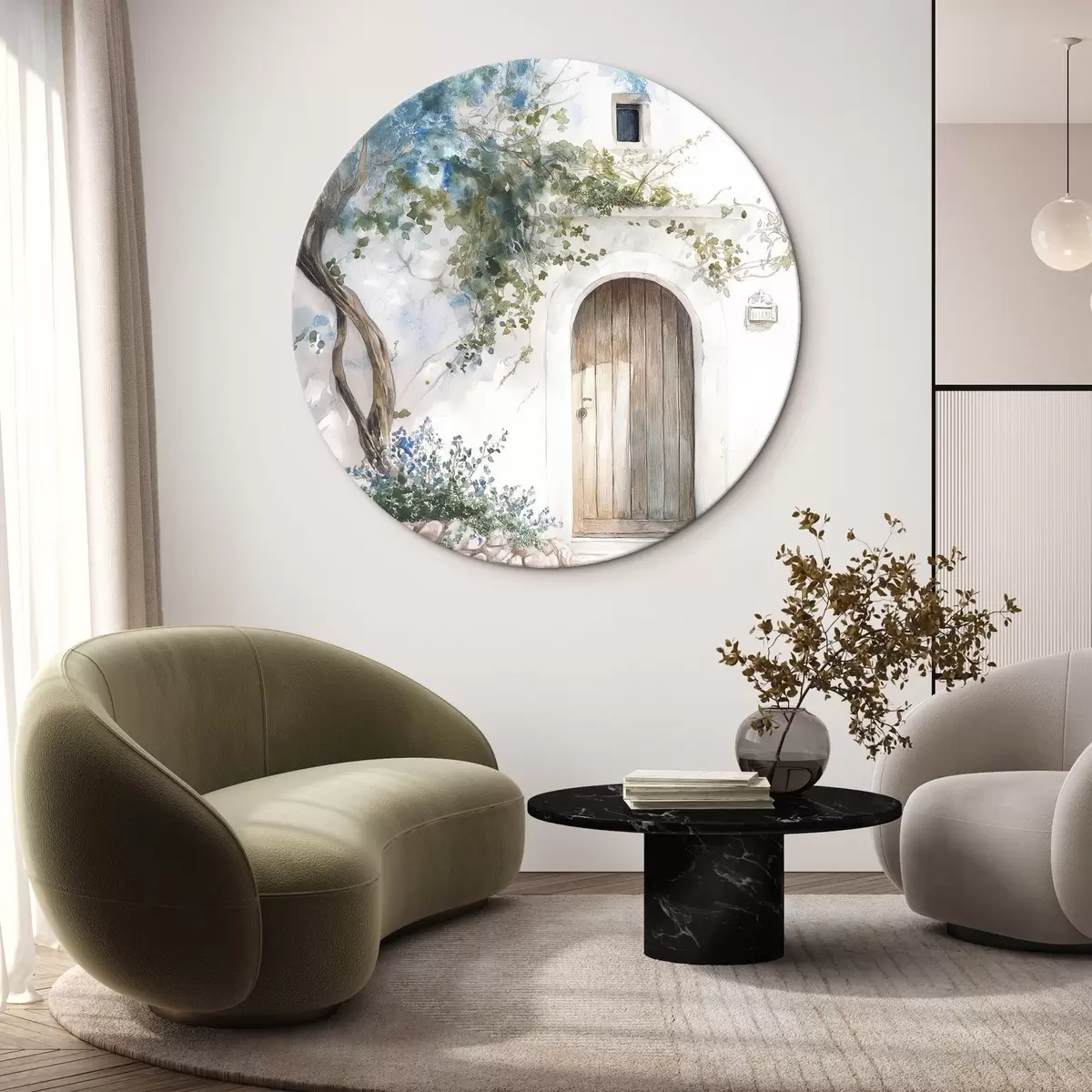 Obrázok Krásny biely dom s kvitnúcim stromom, stredomorský, akvarelový štýl Nr r43179
