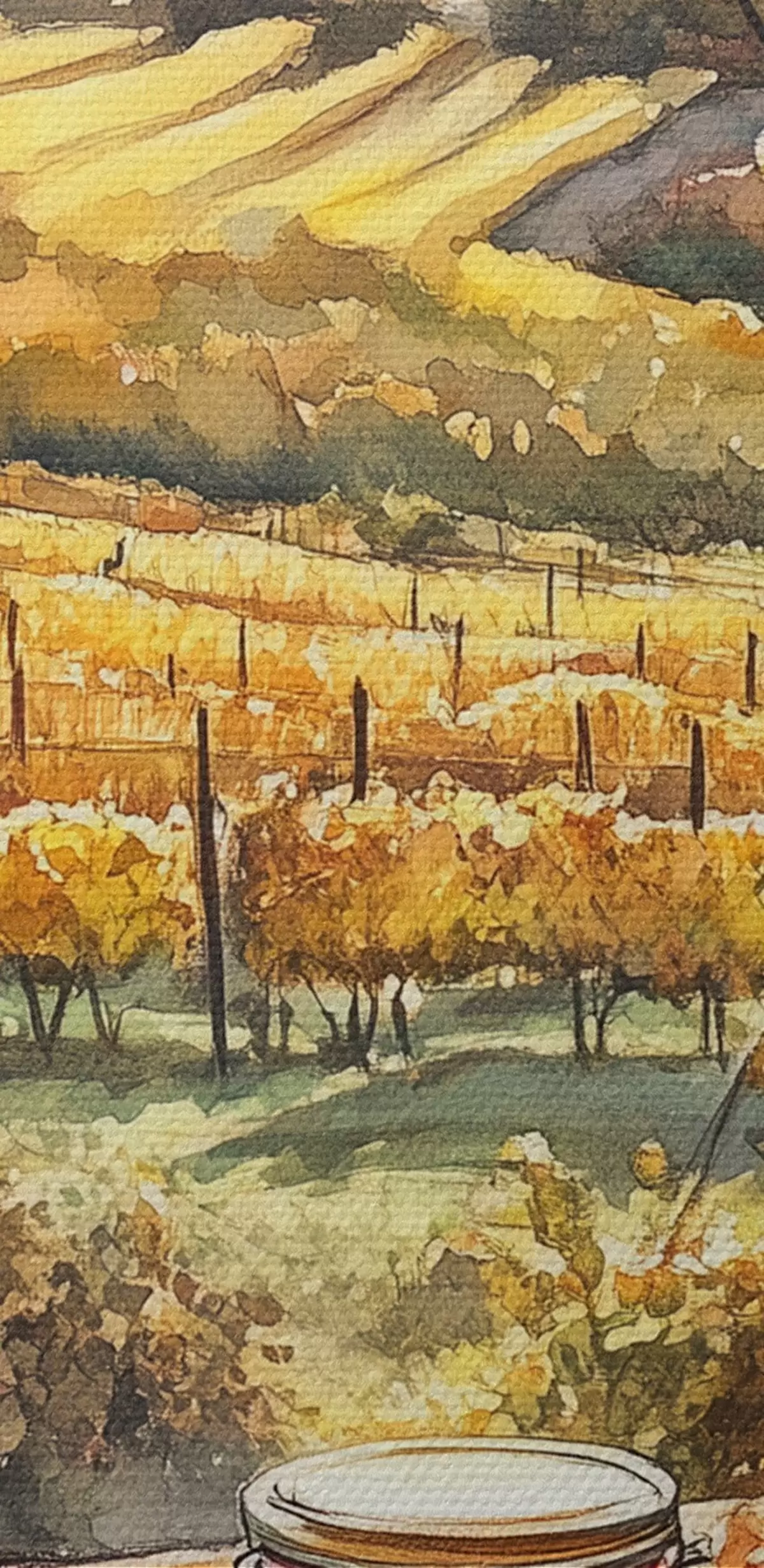 Obrázok Úroda v dedine, rustikálne, ovocie, džem, prírodné krajiny, akvarel Nr r43186
