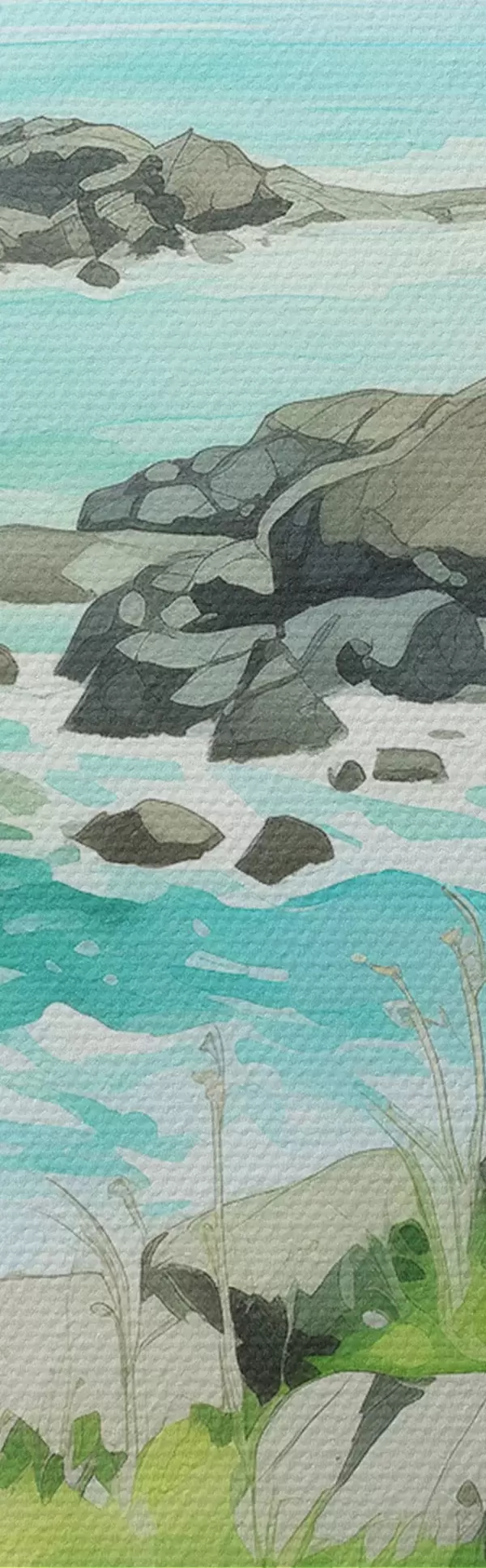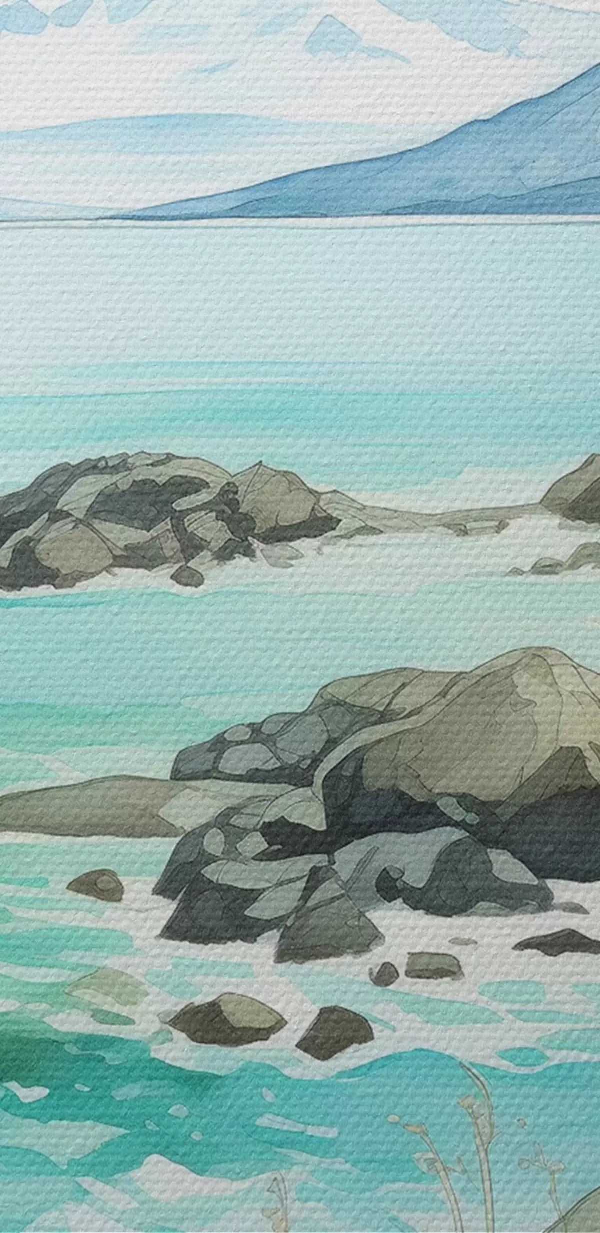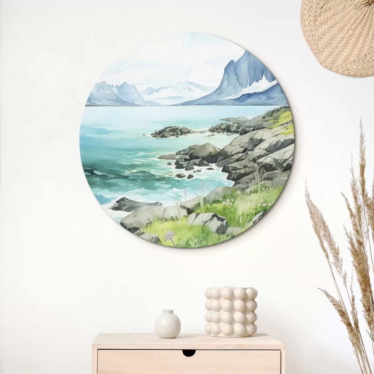 Obrázok Nórsko príroda, fjordy, letná krajina, zelená tráva, hory, akvarel Nr r43188