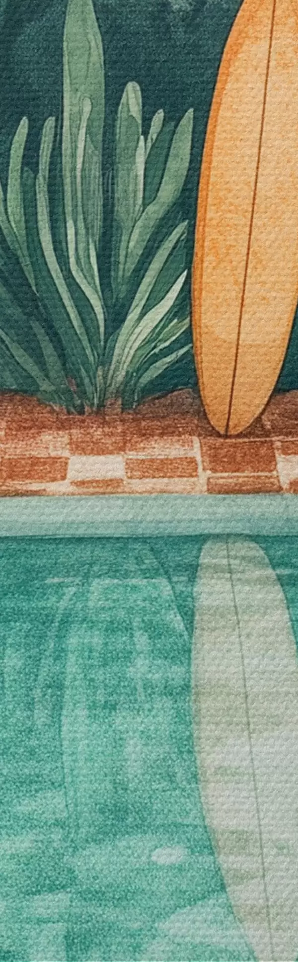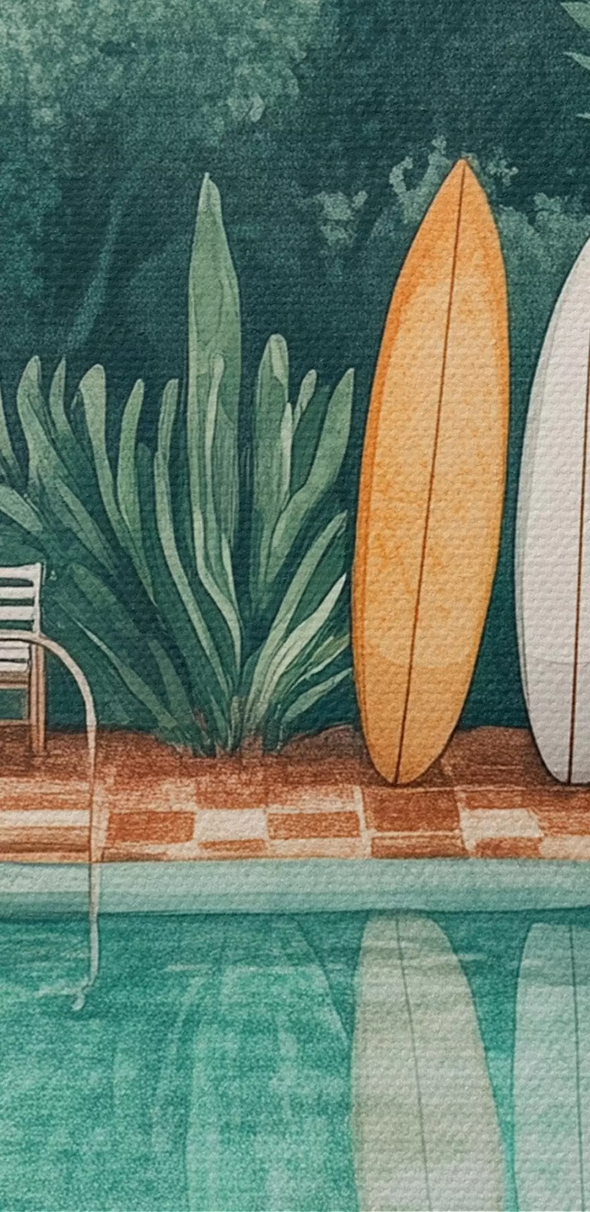 Obrázok Vintage letný bazén, tropický les, zeleň, palmy, akvarelový štýl Nr r43191