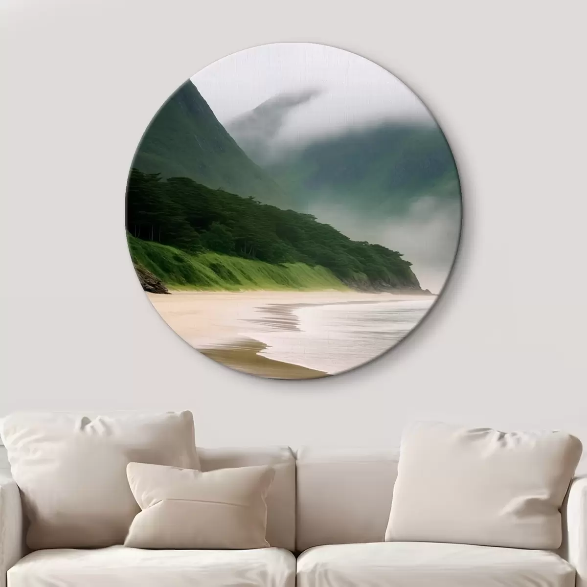 Obrázok Hmlistá pláž pri zelených svahoch Nr r43271