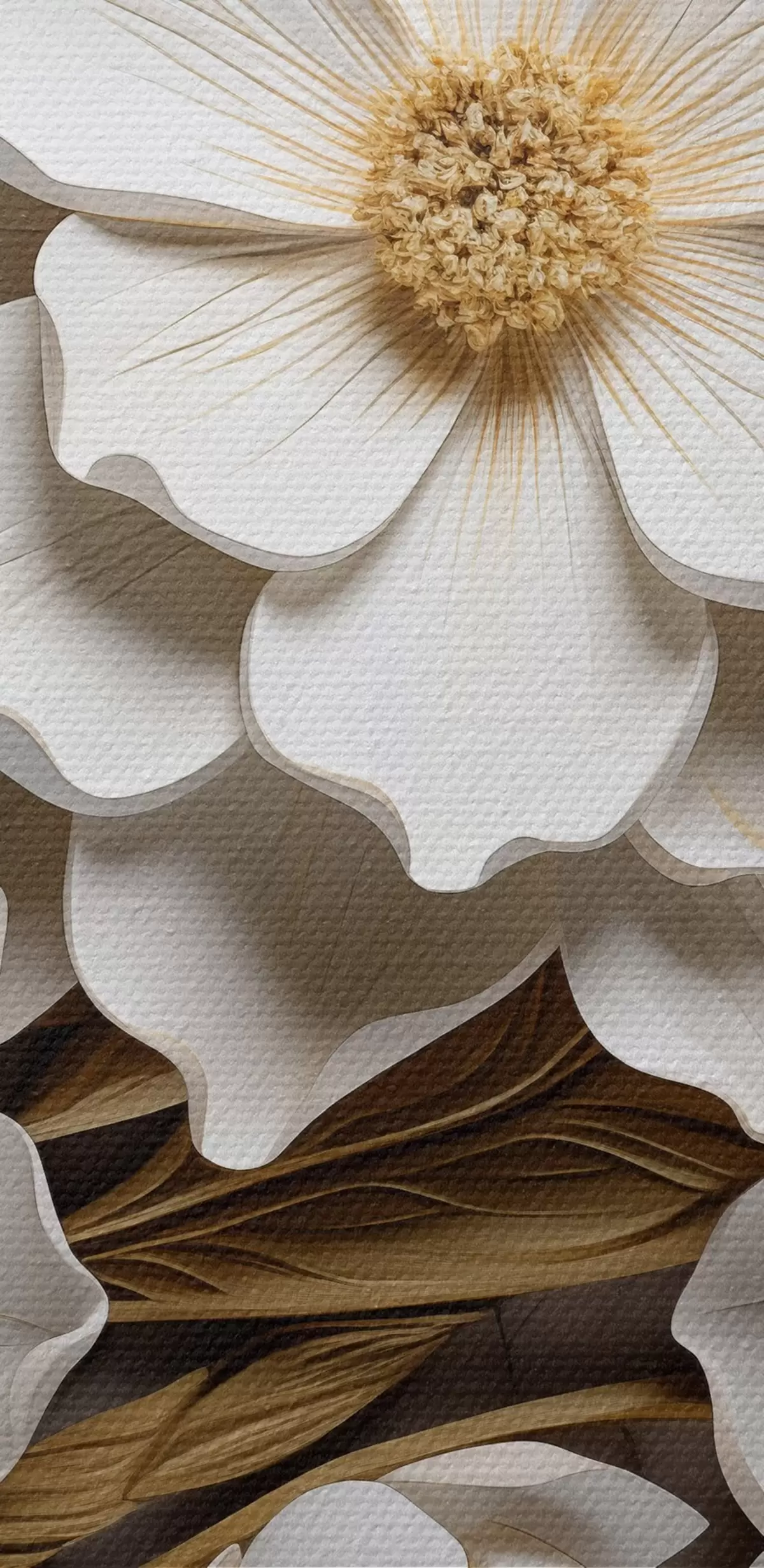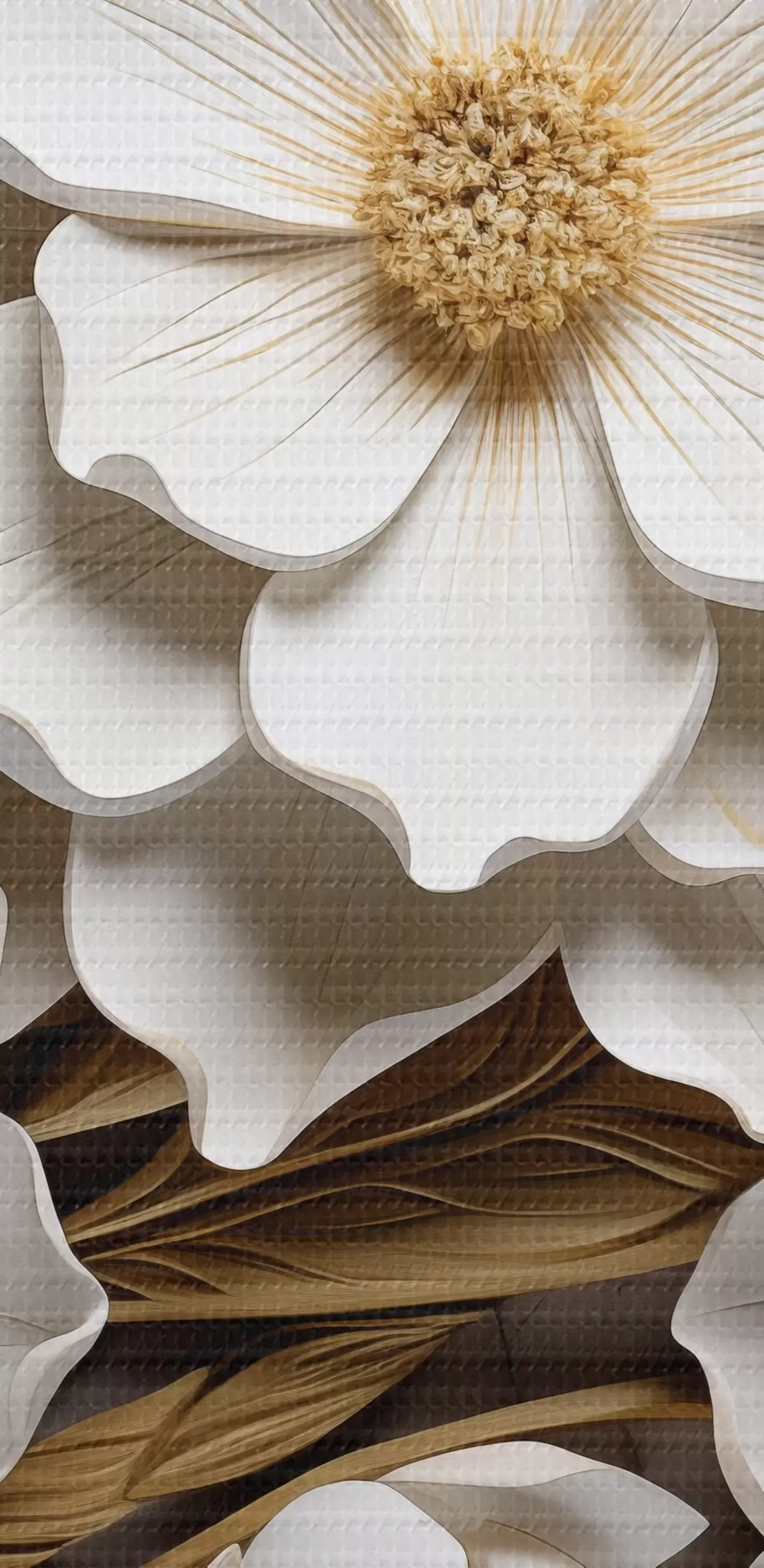 Obrázok Biele kvety v štýle reliéfnej fresky so žltými akcentmi Nr r43330