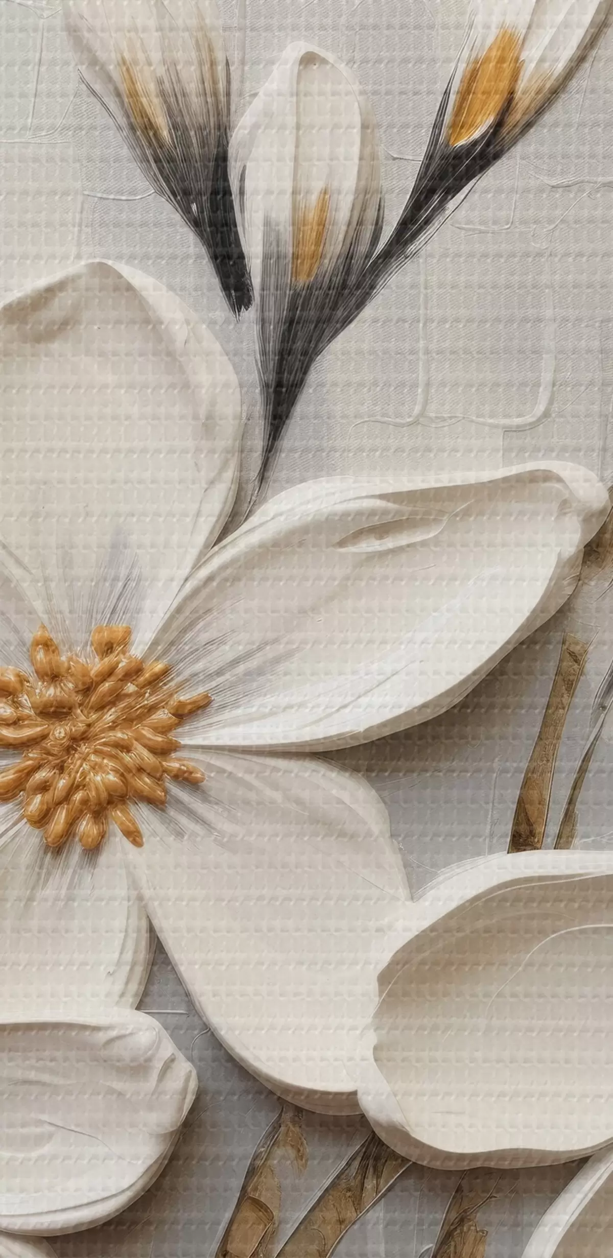 Obrázok Biele objemné kvety v štýle maľby s veľkými ťahmi štetca Nr r43366