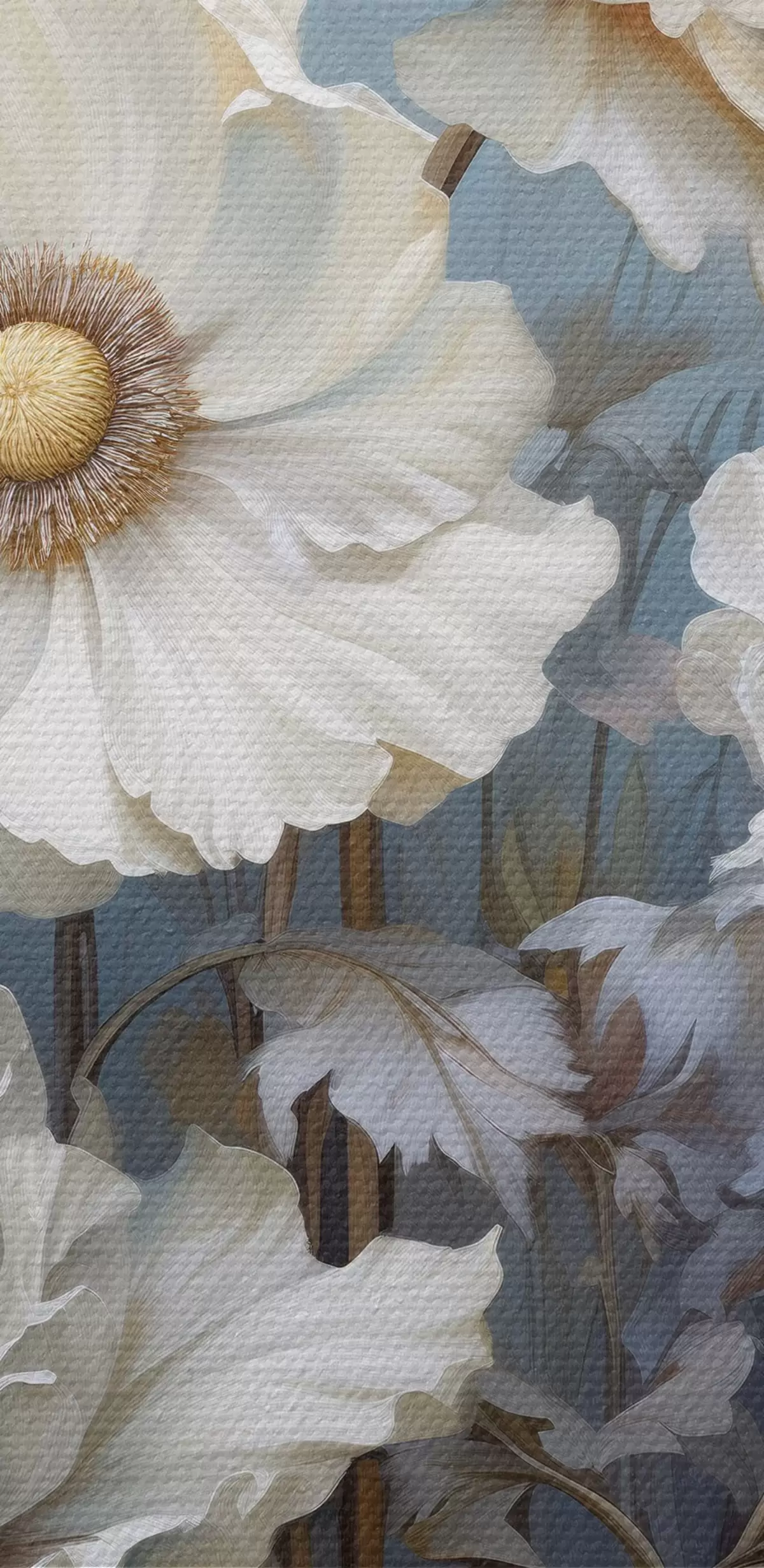 Obrázok Biela kytica pivoniek na modrom pozadí v štýle maľby Nr r43370