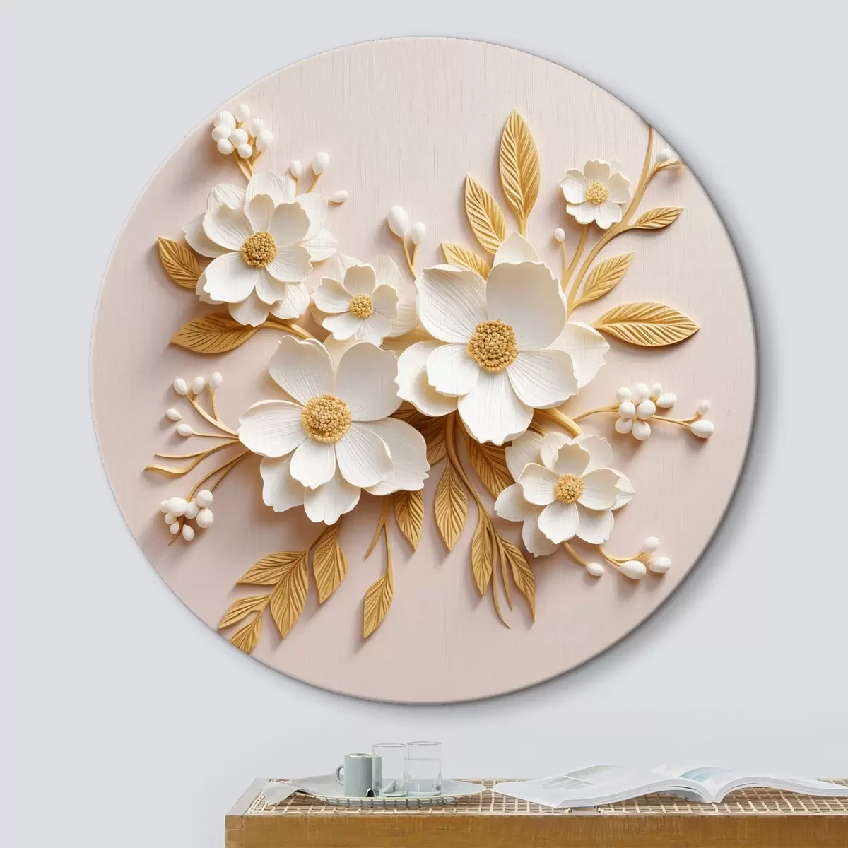 Obrázok 3D biele kvety s listami na krémovom pozadí Nr r43383