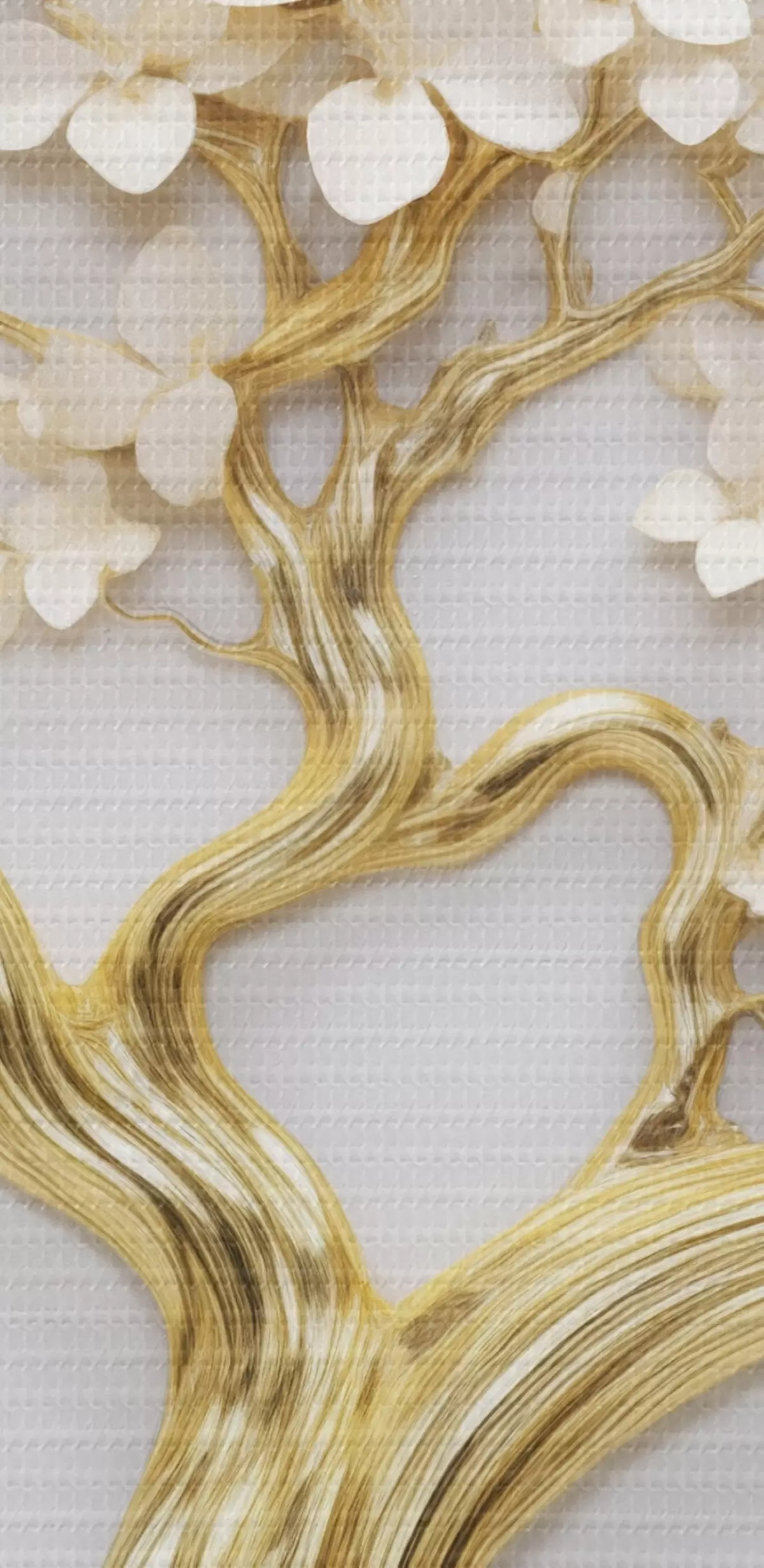 Obrázok Dekoratívny strom s bielymi kvetmi, biele pozadie, biele skaly, zložité detaily, umenie inšpirované prírodou Nr r43388