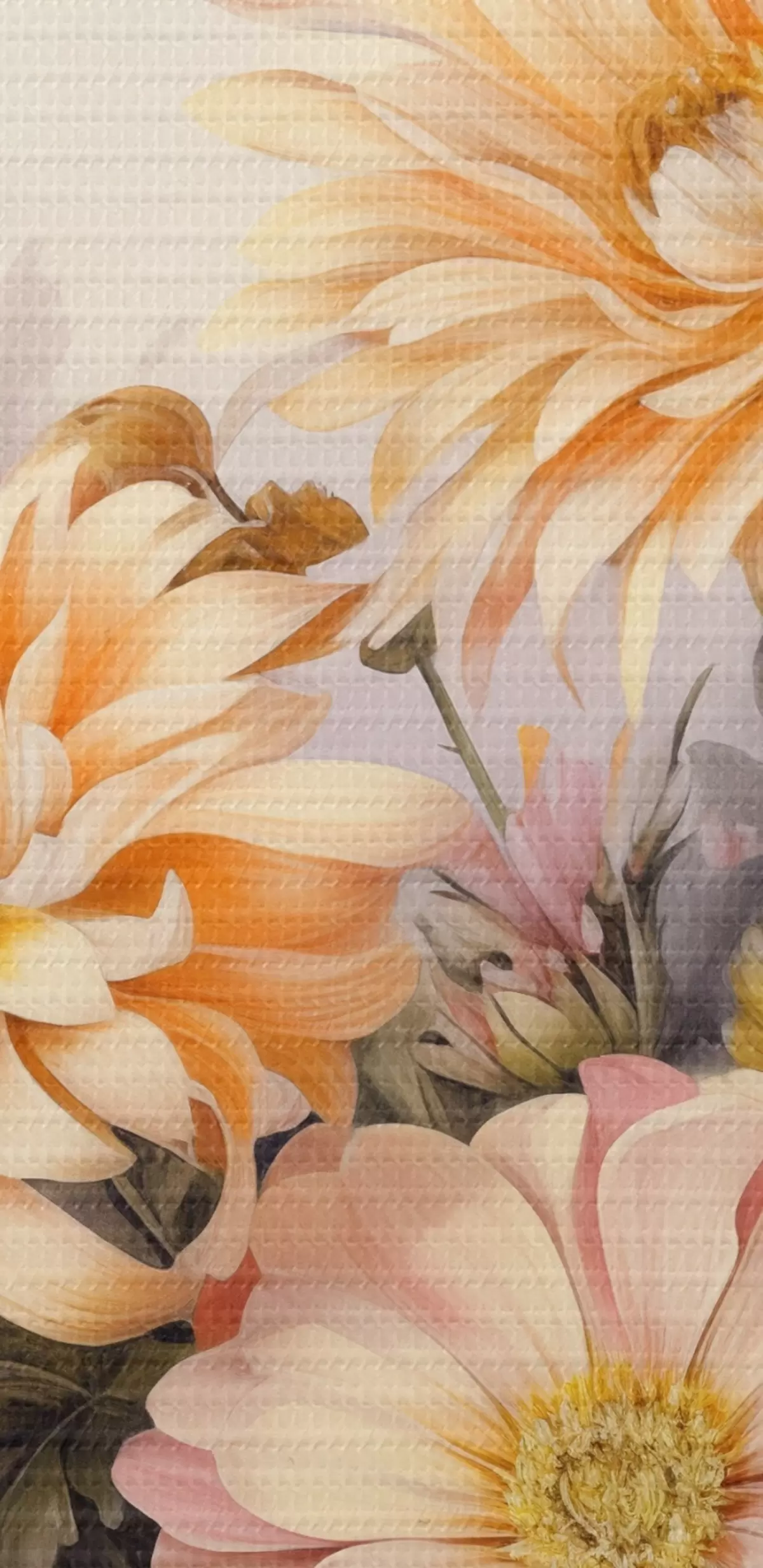 Obrázok Zbierka ružových, žltých a oranžových kvetov, svetlé pozadie, jemné farby, vintage štýl, botanická ilustrácia Nr r43401