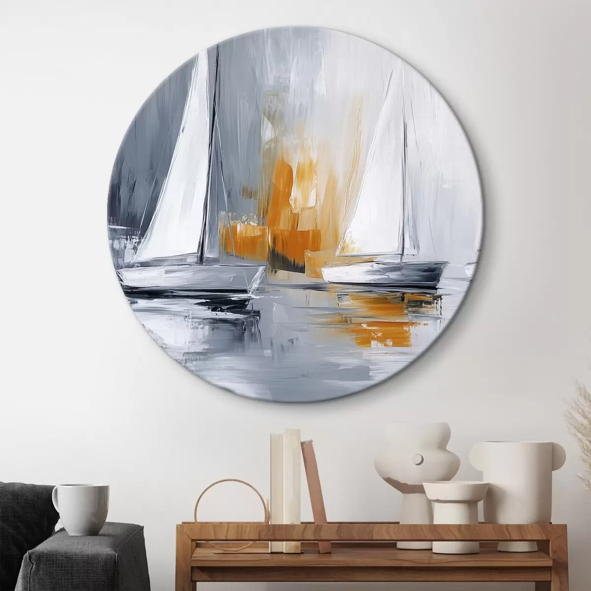 Obrázok Plachetnice, abstrakcia, akrylová kresba, sivá a oranžová Nr r43499