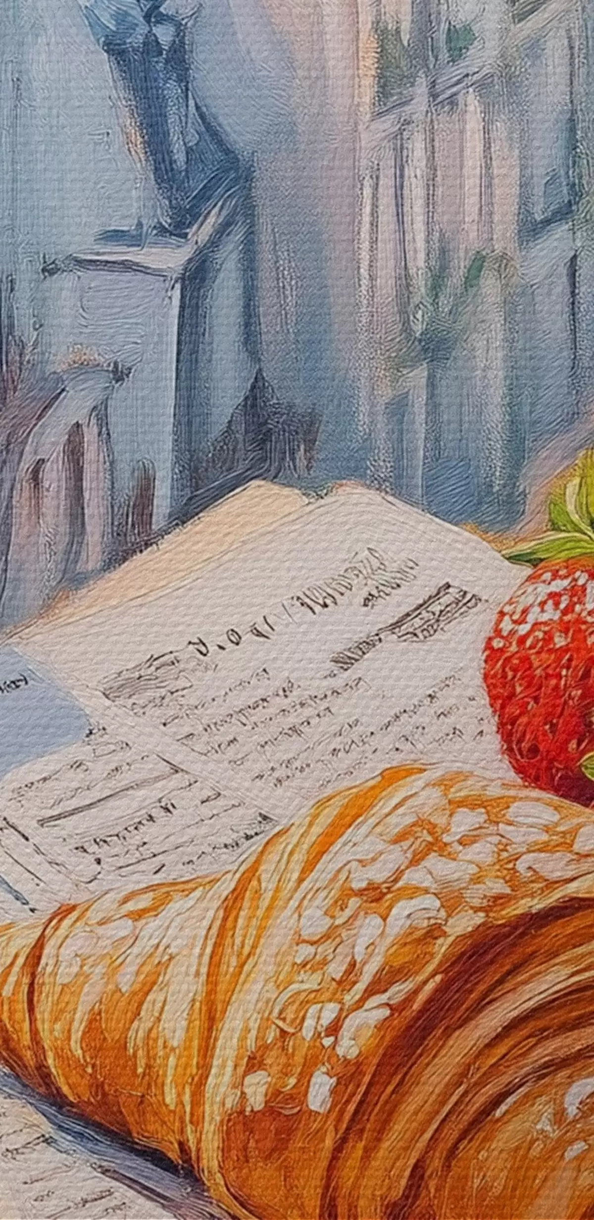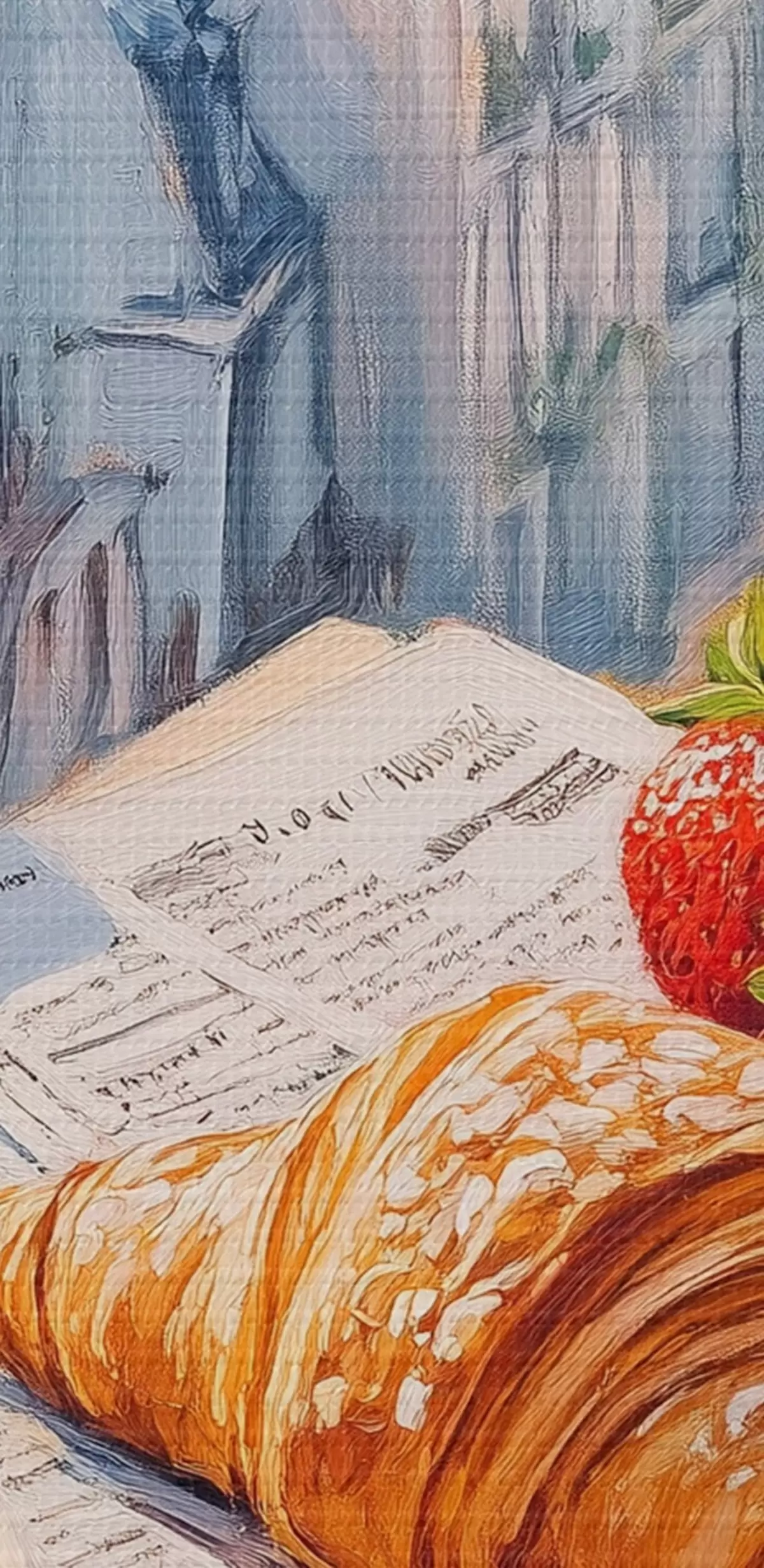 Obrázok Východ slnka na balkóne v Paríži, Eiffelova veža, jahody, káva, denník Nr r43890