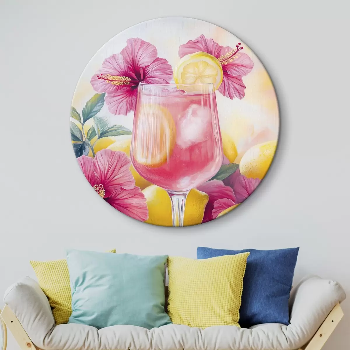 Obrázok Farebný koktail s kvetmi ibišteka a citrónmi, leto, akvarelový štýl Nr r43894