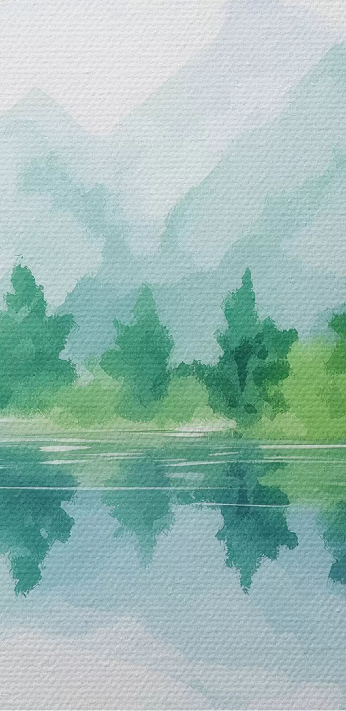 Obrázok Jazero v blízkosti hory v akvarelovom štýle Nr r43922