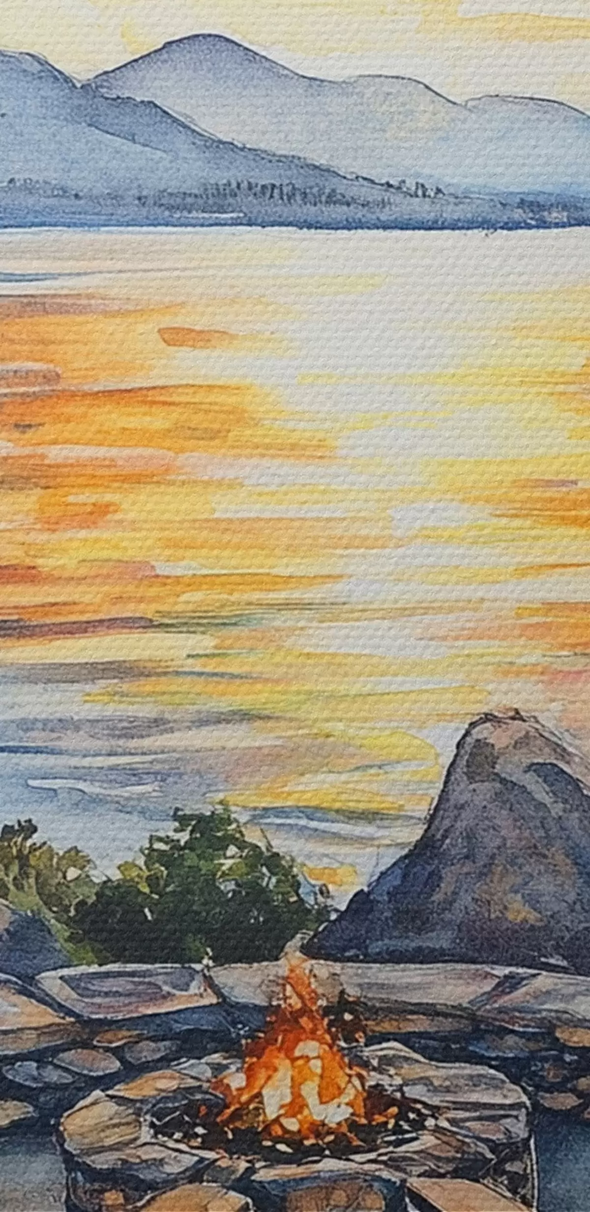 Obrázok Jazero s horami pri západe slnka, cestovanie, útulný krb, akvarel Nr r44018