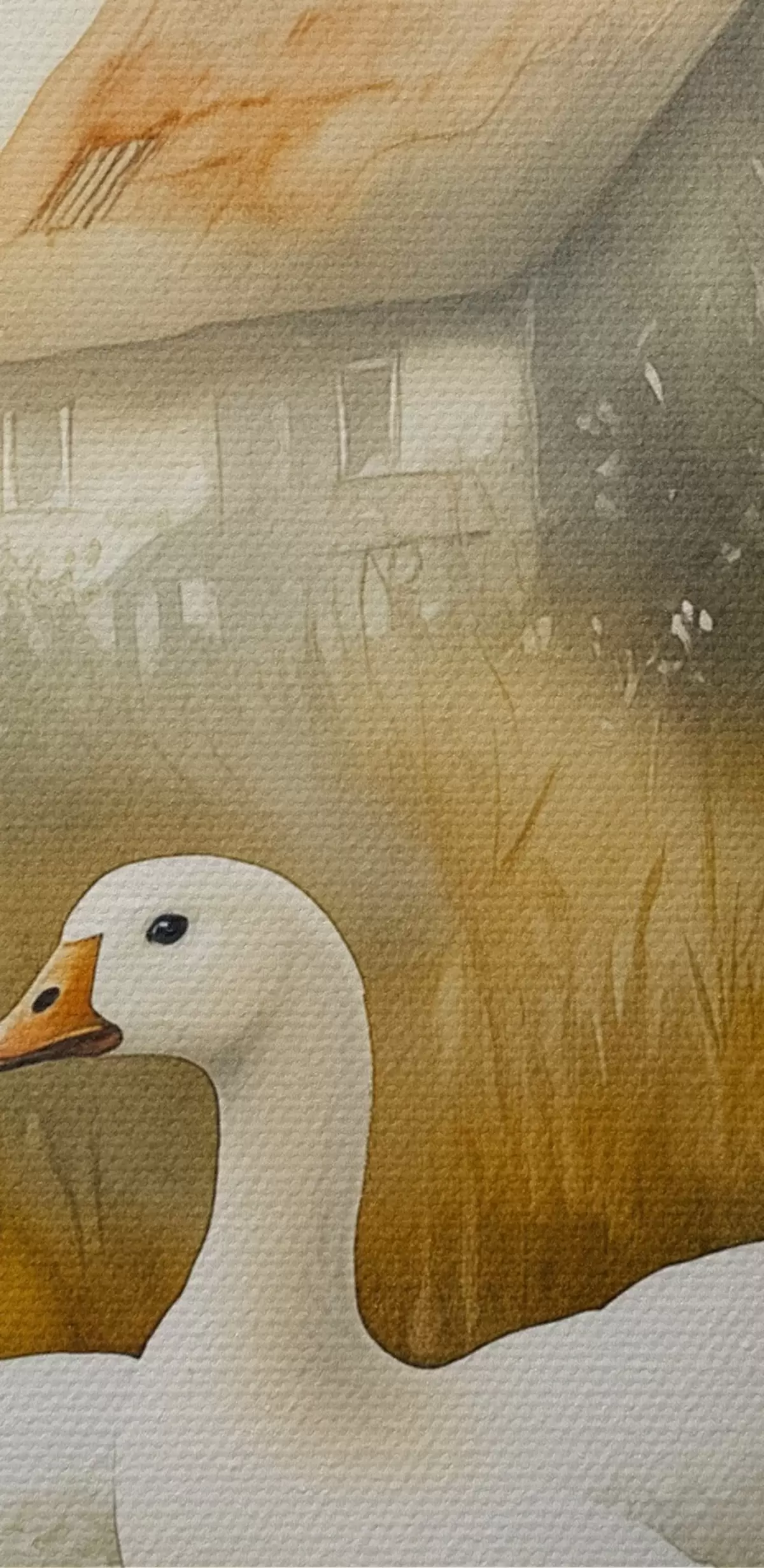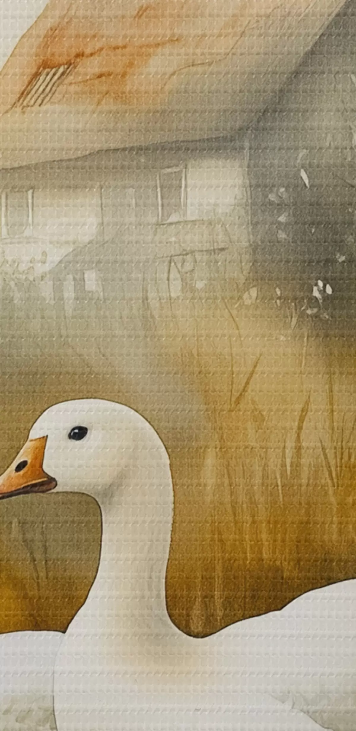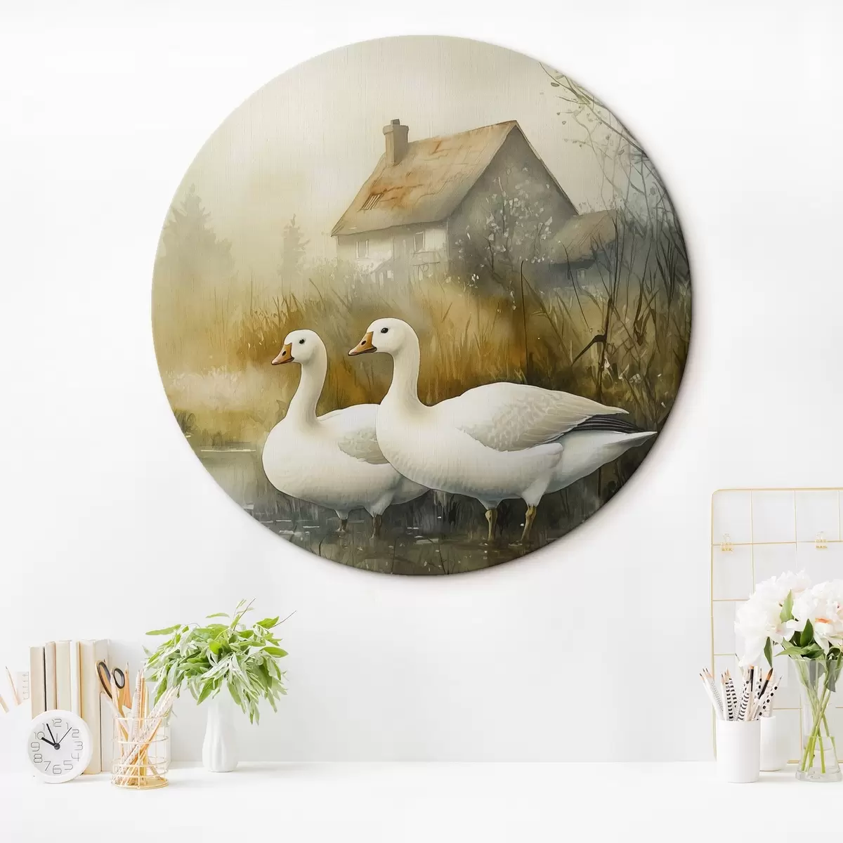 Obrázok Husi v jazere v blízkosti farmy, rustikálny, akvarelový štýl Nr r44022