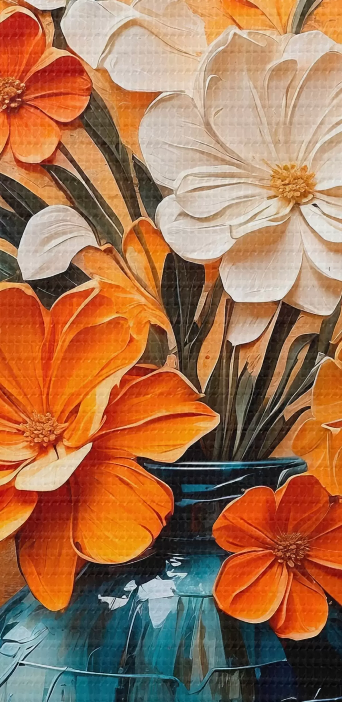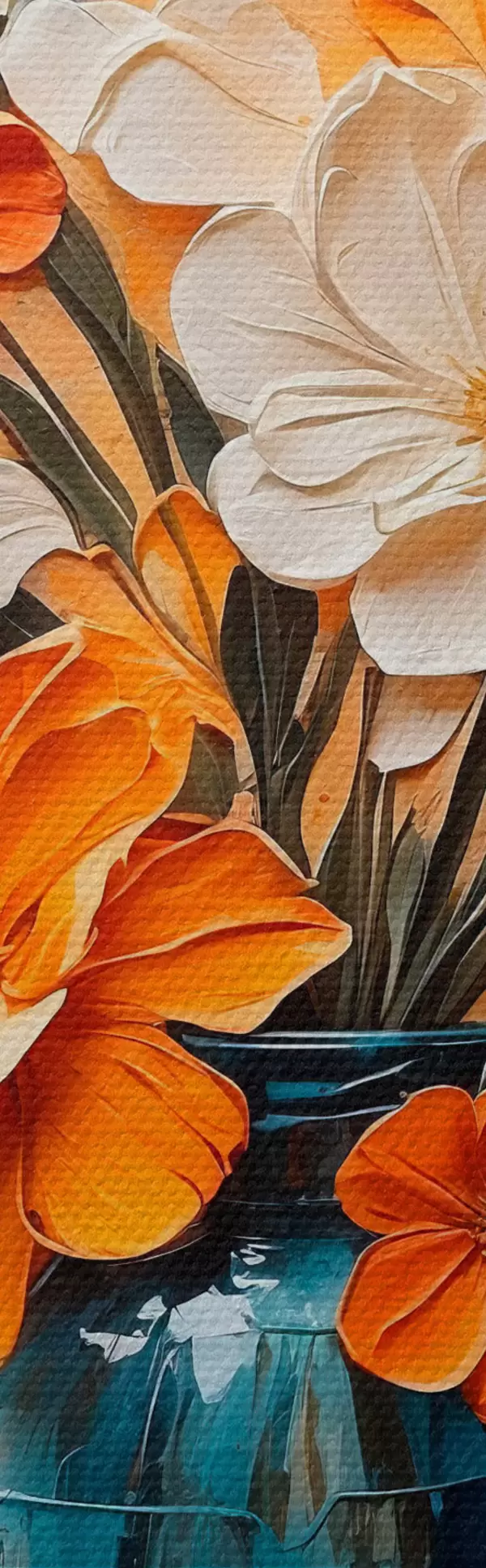 Obrázok Biele a oranžové kvety vo váze v štýle olejomaľby Nr r44059