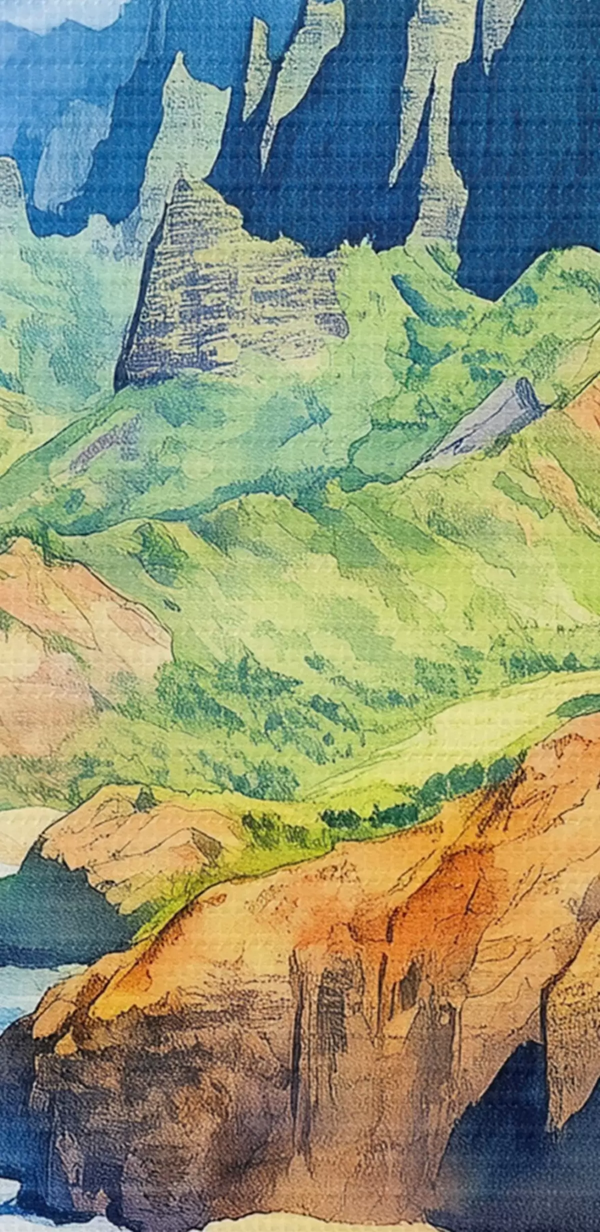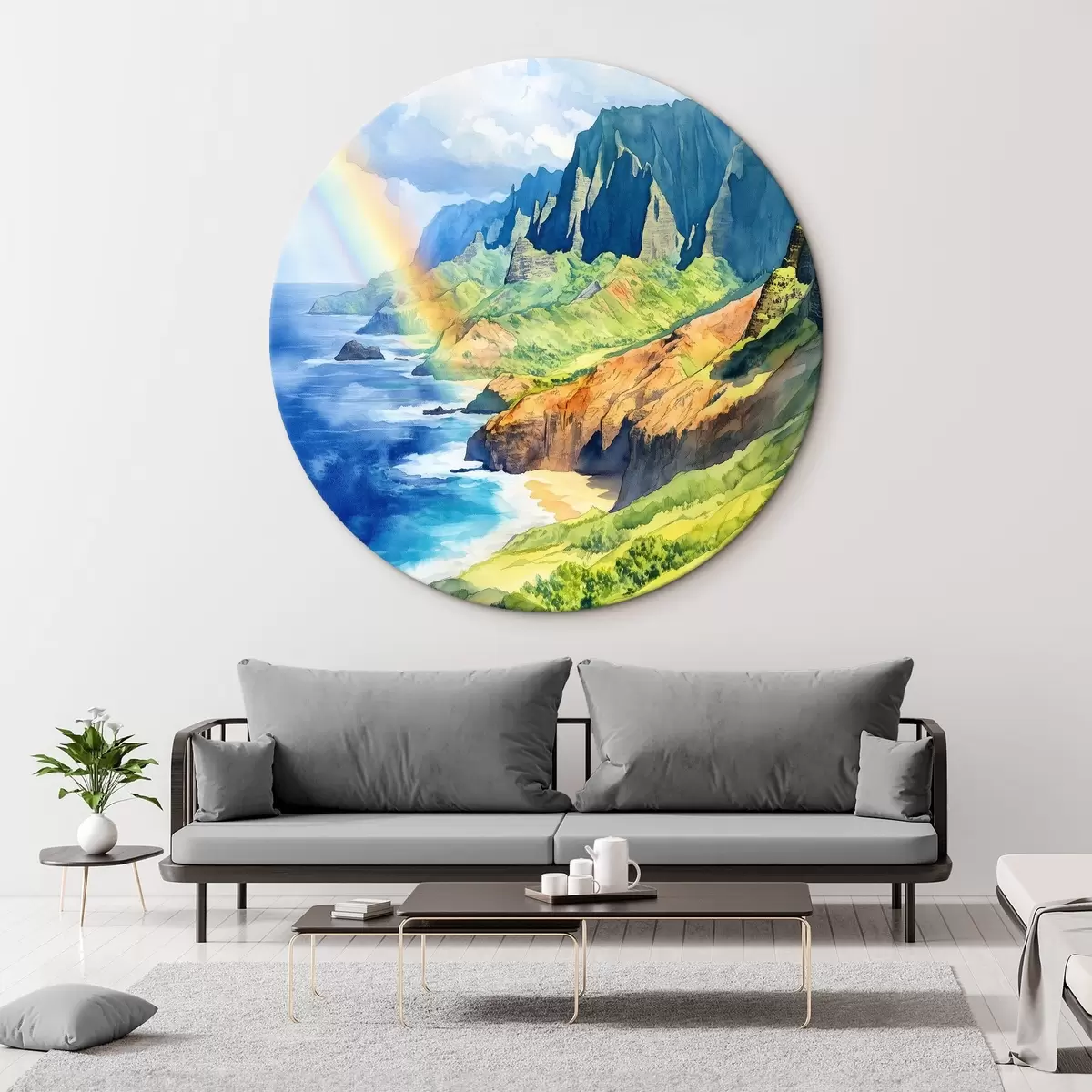 Obrázok Havajský ostrov, akvarel, dúha, zelené hory, oceán Nr r44141