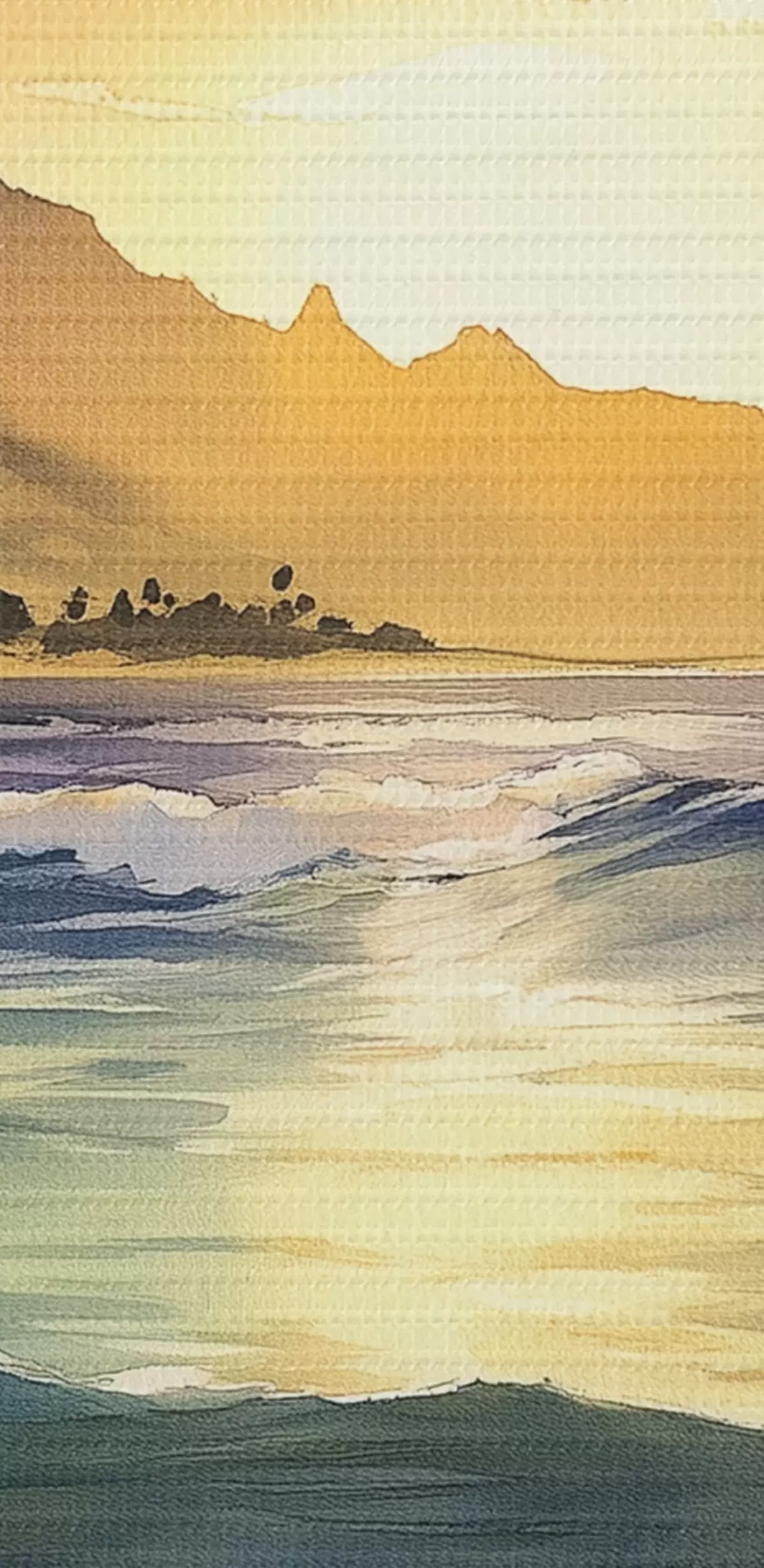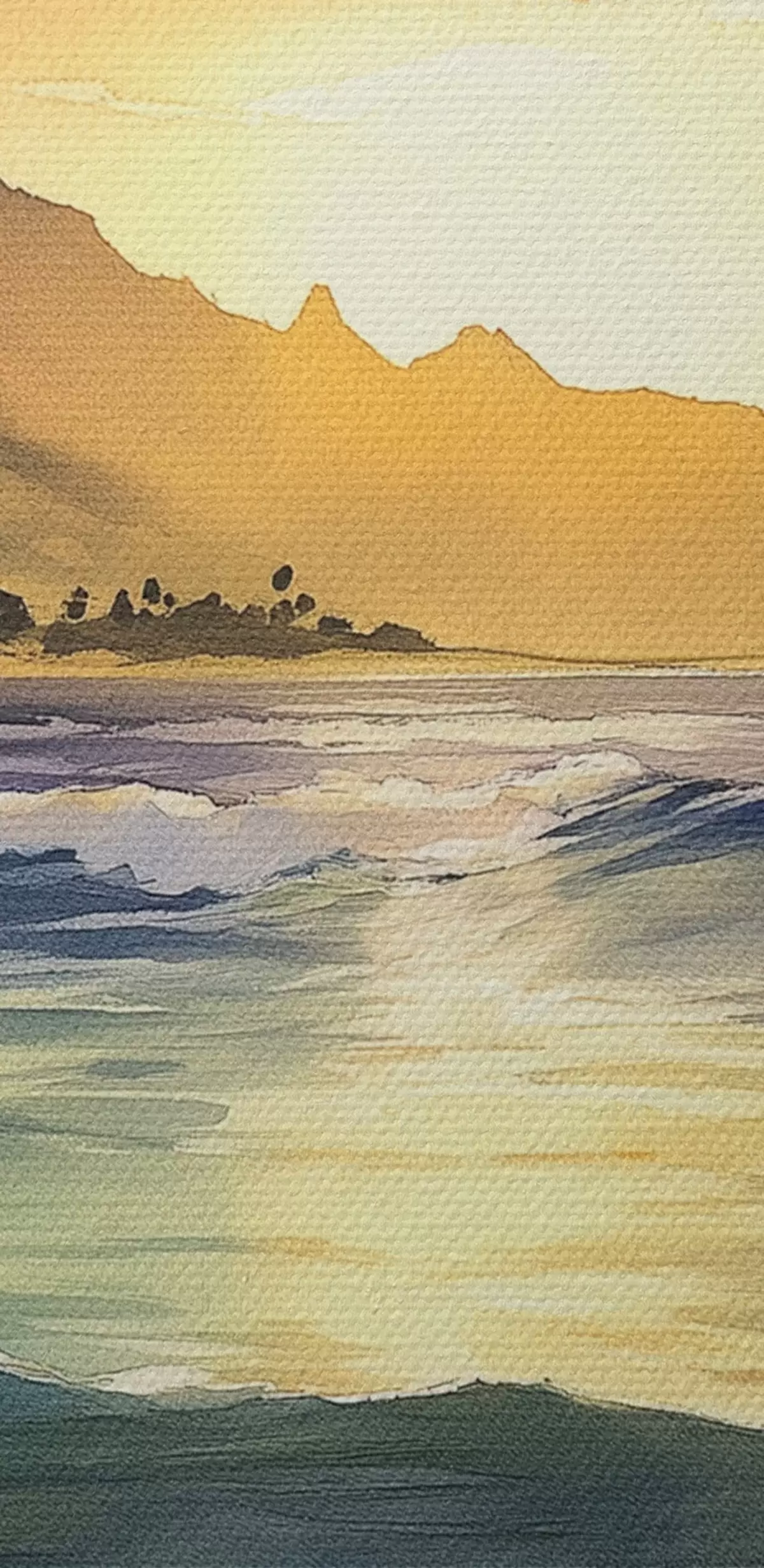 Obrázok Vlny oceánu, západ slnka, akvarel, príroda Nr r44147