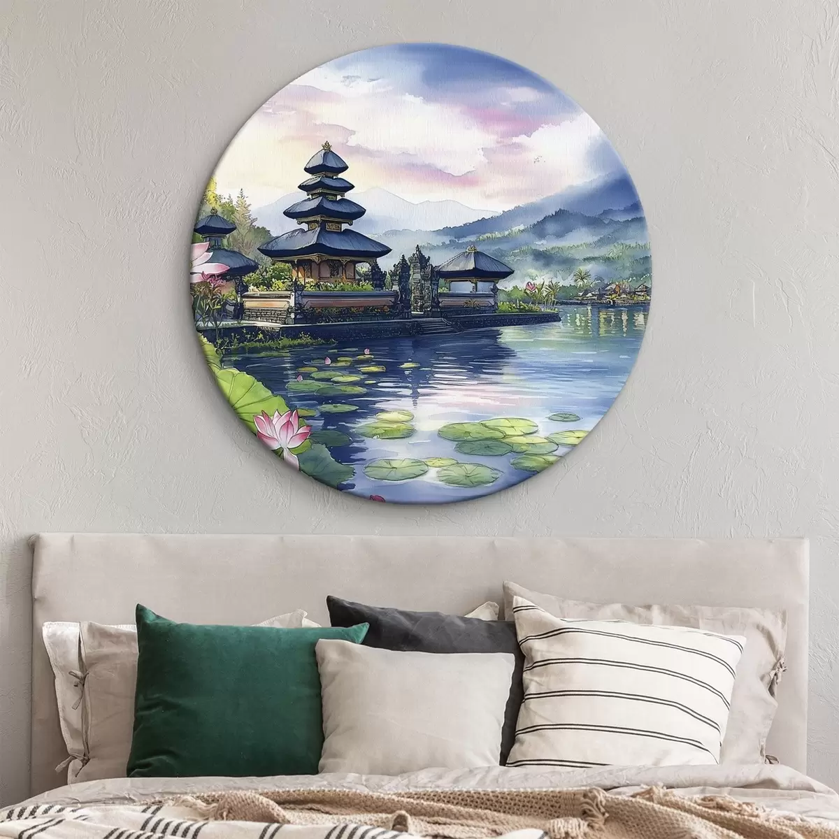 Obrázok Indonézsky ostrov, chrám, budhizmus, tropická príroda, akvarel Nr r44148