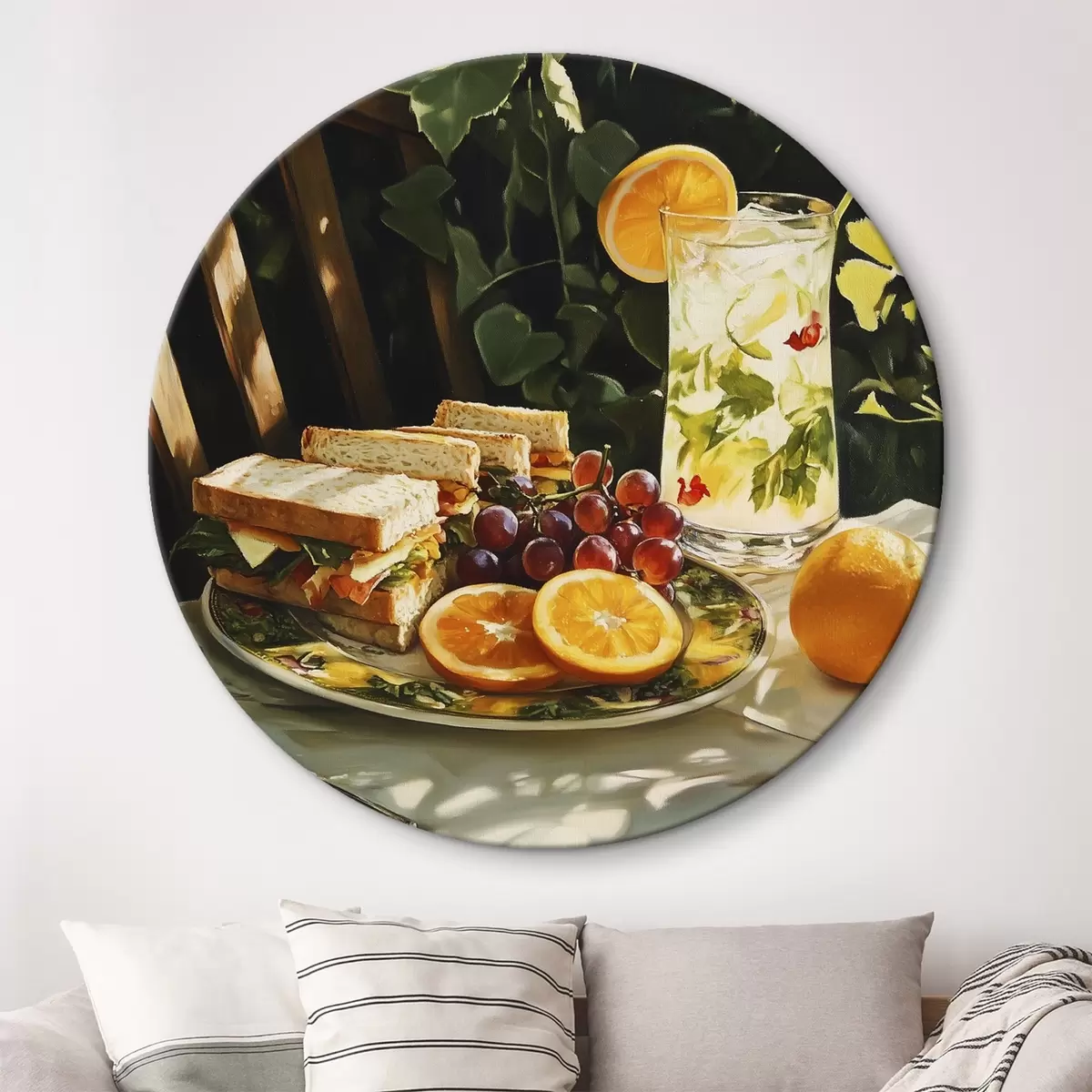 Obrázok Estetický piknik v letnej záhrade, sendviče, pomaranče, limonáda Nr r44306