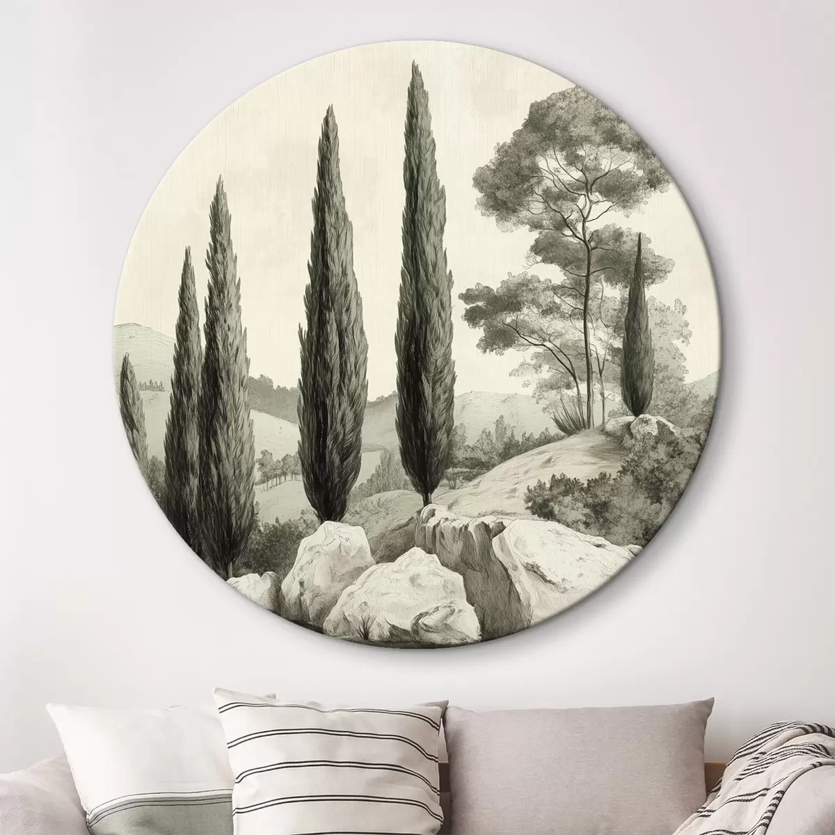 Obrázok Toskánska krajiny, pastelové farby, cyprusy, skaly, rustikálny štýl Nr r44307