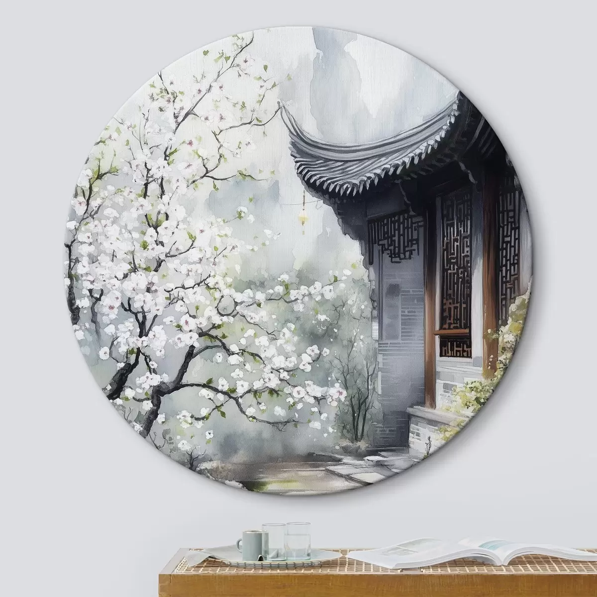 Obrázok Japonská záhrada s čerešňou a domom, orientálny, akvarelový štýl Nr r44309