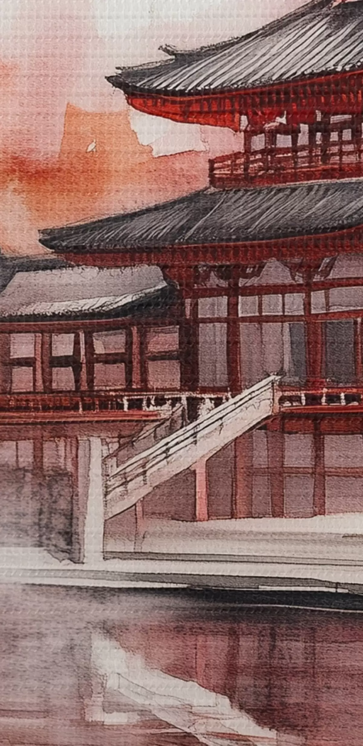 Obrázok Krásna japonská krajina s kvitnúcou čerešňou a domom na jazere Nr r44310