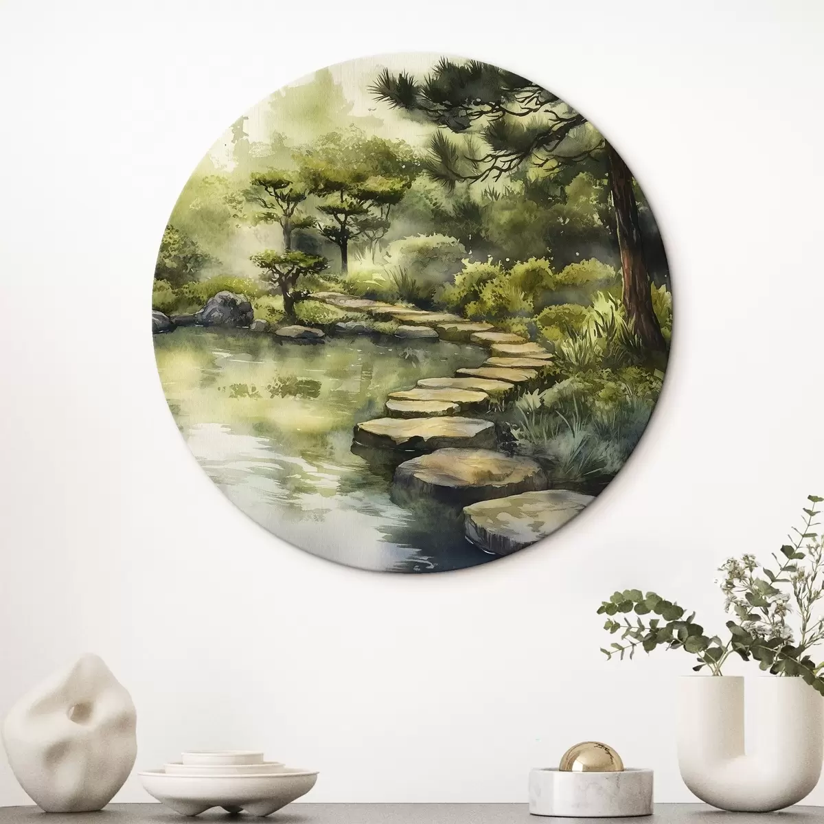 Obrázok Orientálny les so skalami, rybníkom a borovicami, zeleň, akvarel Nr r44311