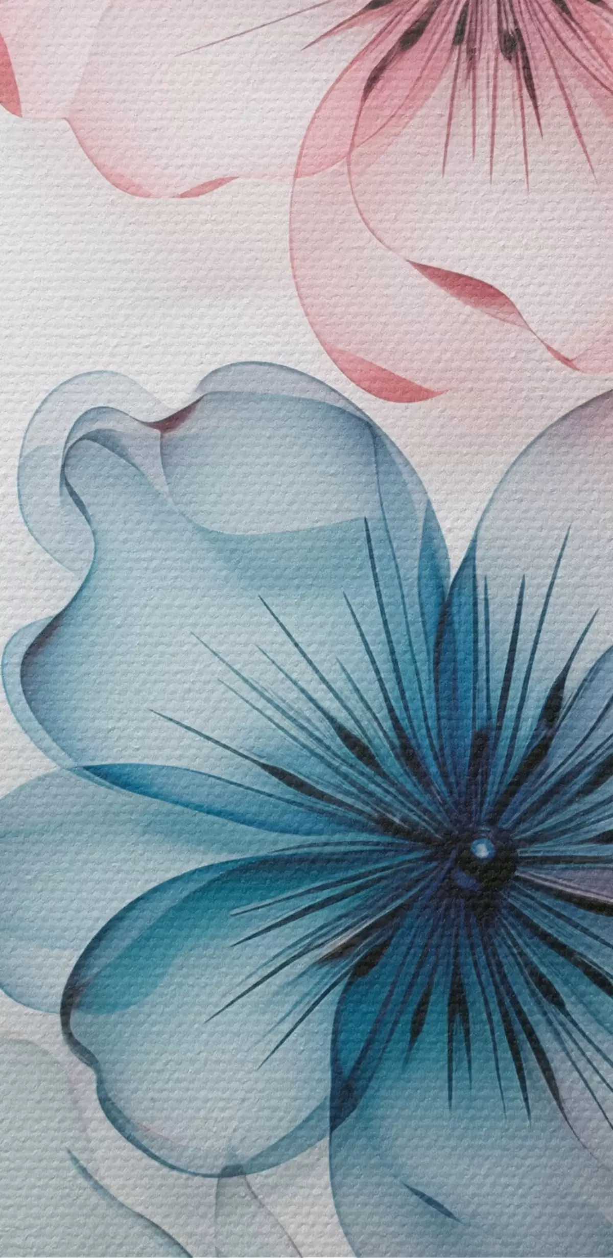 Obrázok Priesvitné tlmené ružové a modré kvety s viditeľnými tyčinkami a stonkami Nr r44405