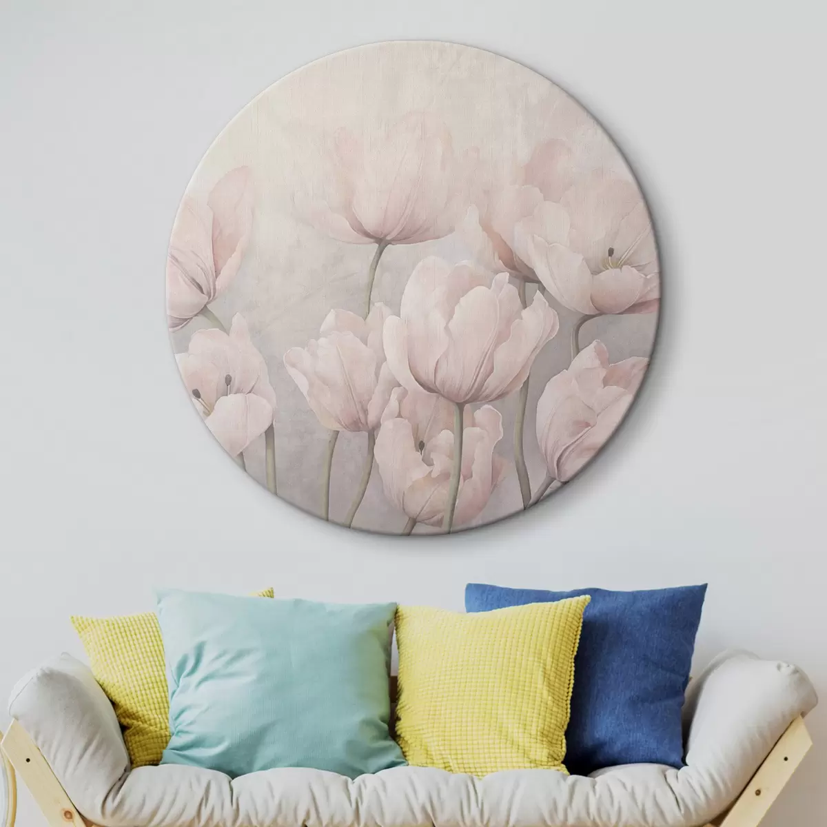 Obrázok Vintage textúrované ružové tulipány s dlhými stonkami, jemné tlmené farby, svetlosivé pozadie Nr r44407