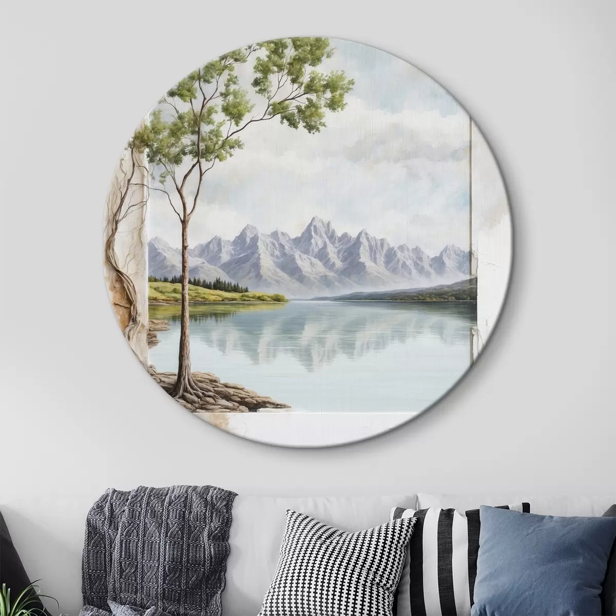 Obrázok Pohľad na jazero a zasnežené hory v zábere Nr r44458