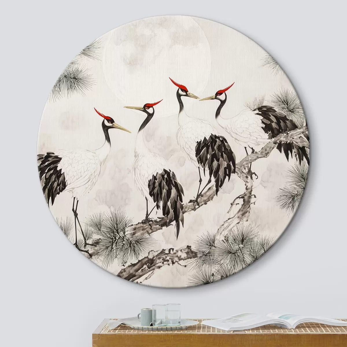 Obrázok Čínske umenie so žeriavmi a borovicami, orientálny štýl, príroda Nr r44503