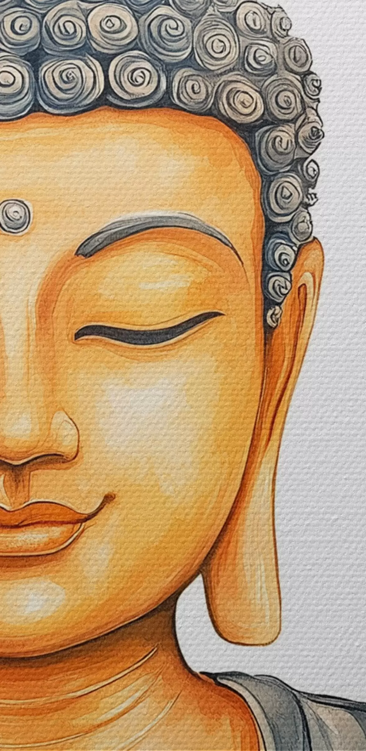 Obrázok Budha obklopený oranžovými kvetmi, akvarelový štýl Nr r44508