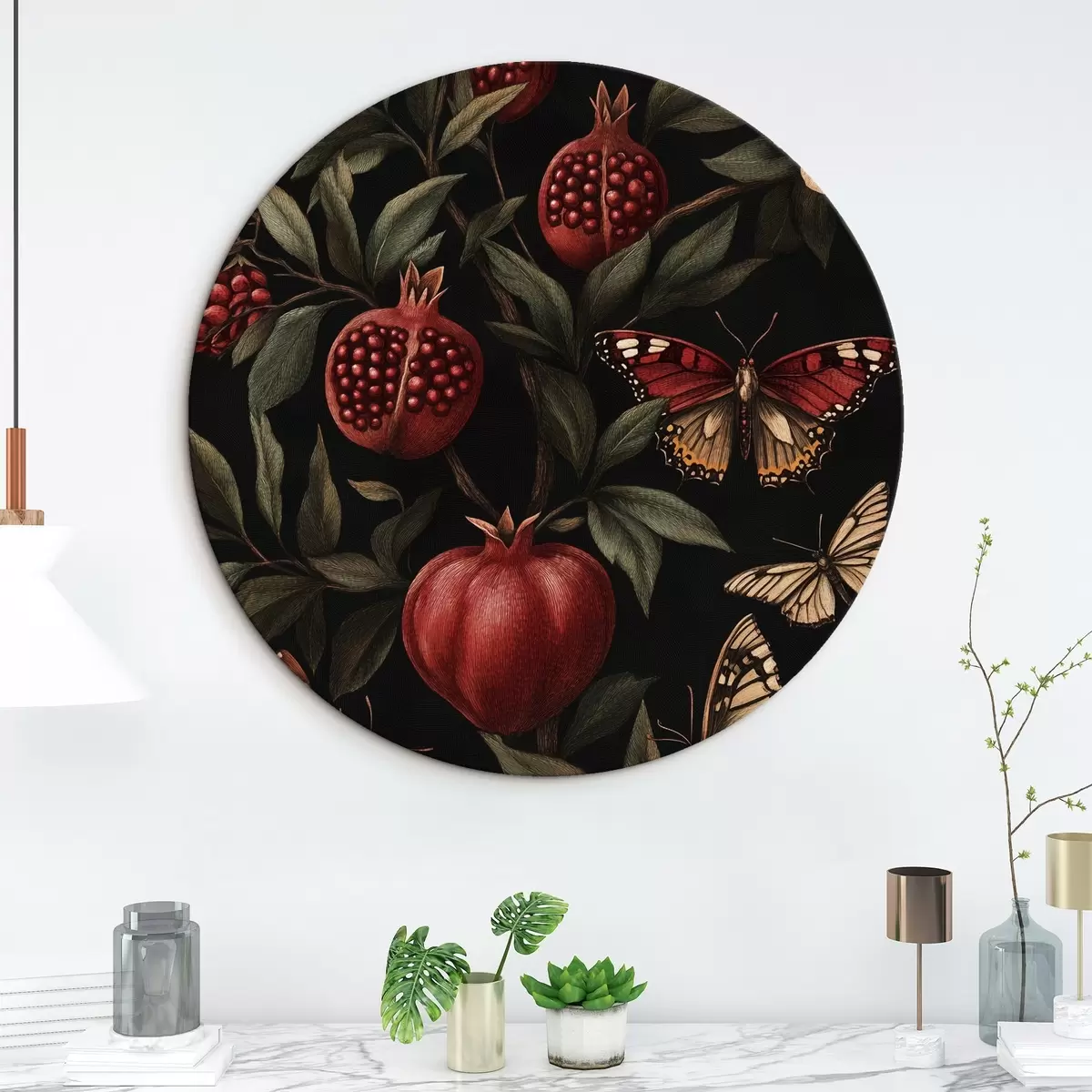 Obrázok Botanické umenie s granátovými jablkami a motýľmi Nr r44511