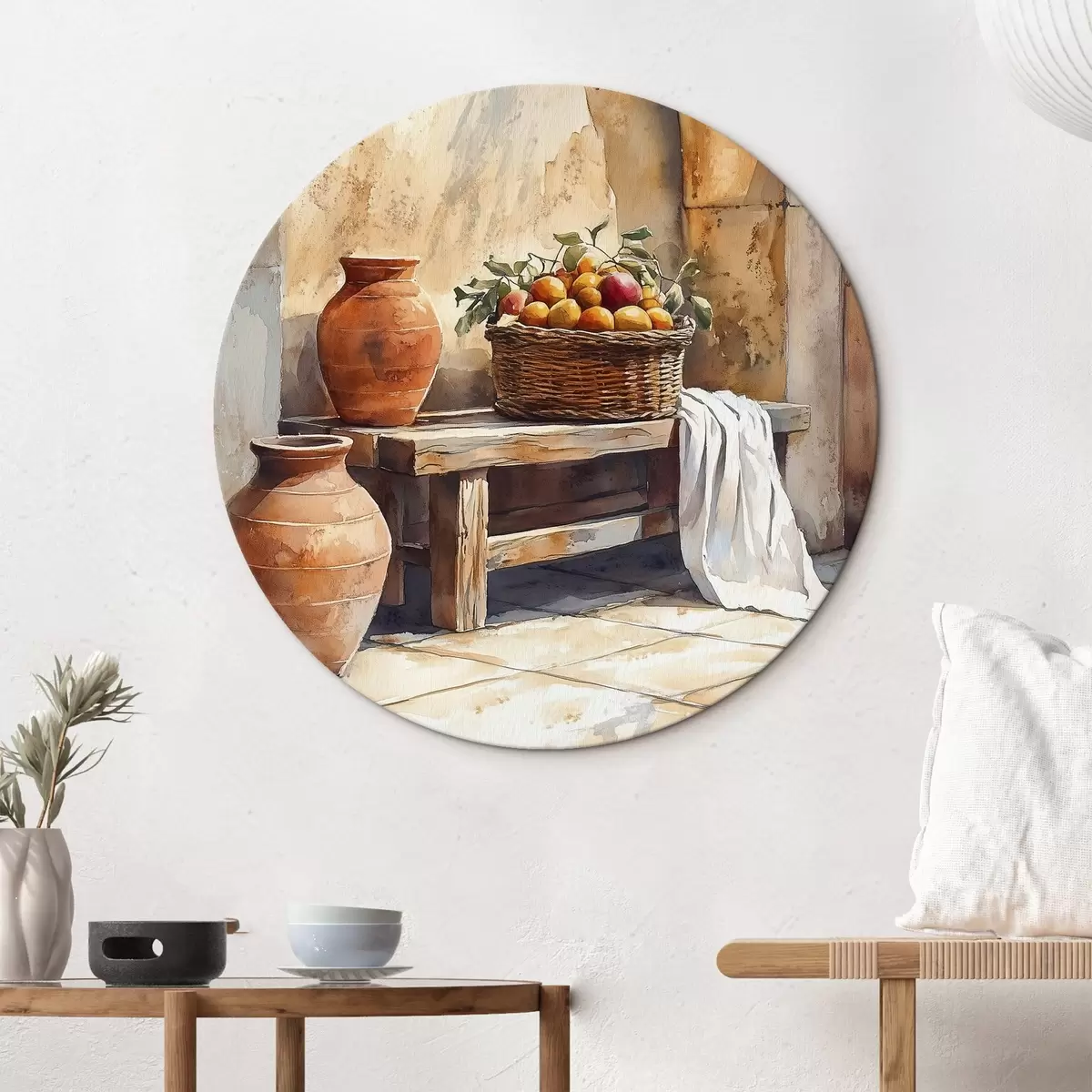 Obrázok Estetické vázy a prútený košík s pomarančmi, Toskánsko, rustikálny štýl Nr r44605