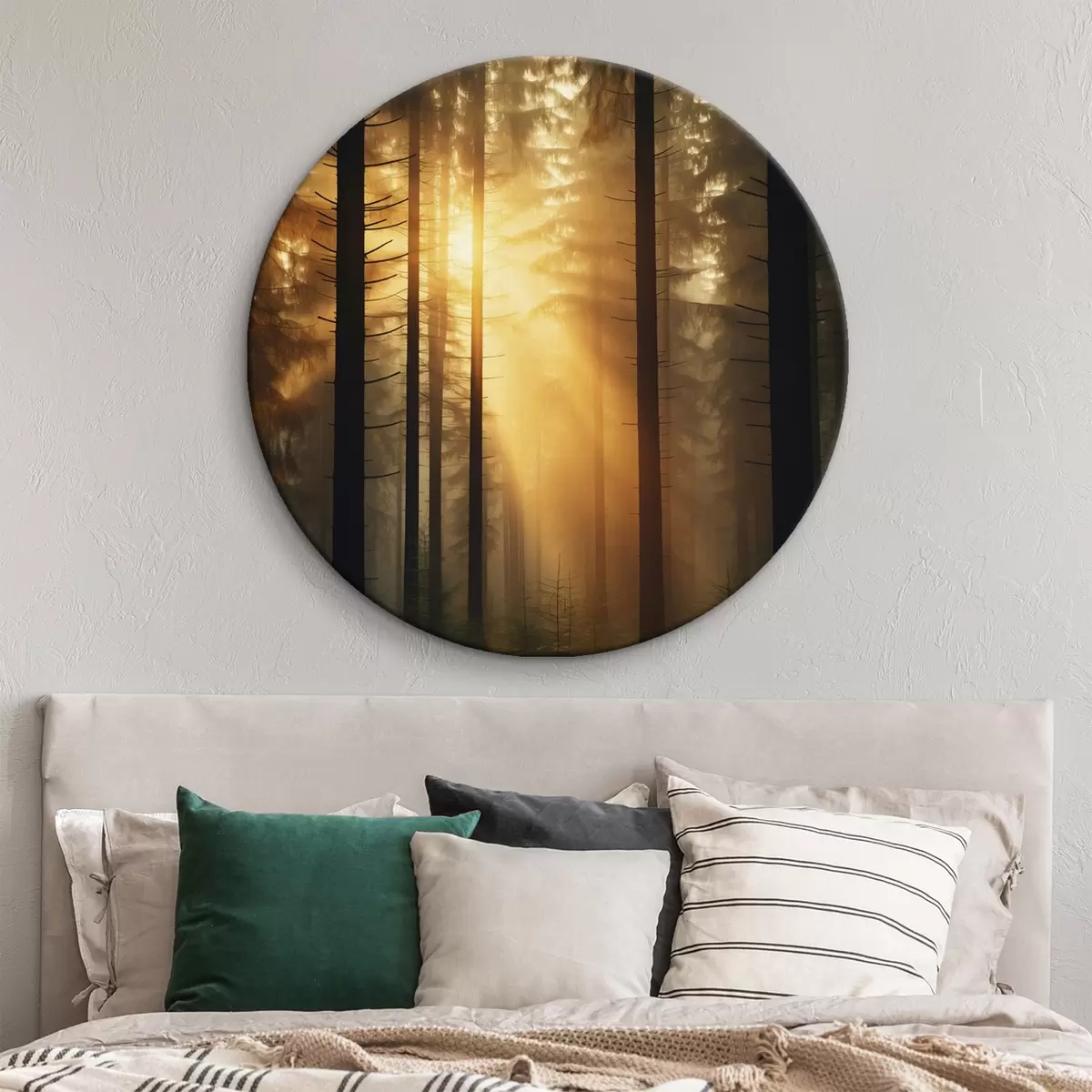 Obrázok Hustý borovicový les so západom slnka, realizmus, príroda Nr r44615