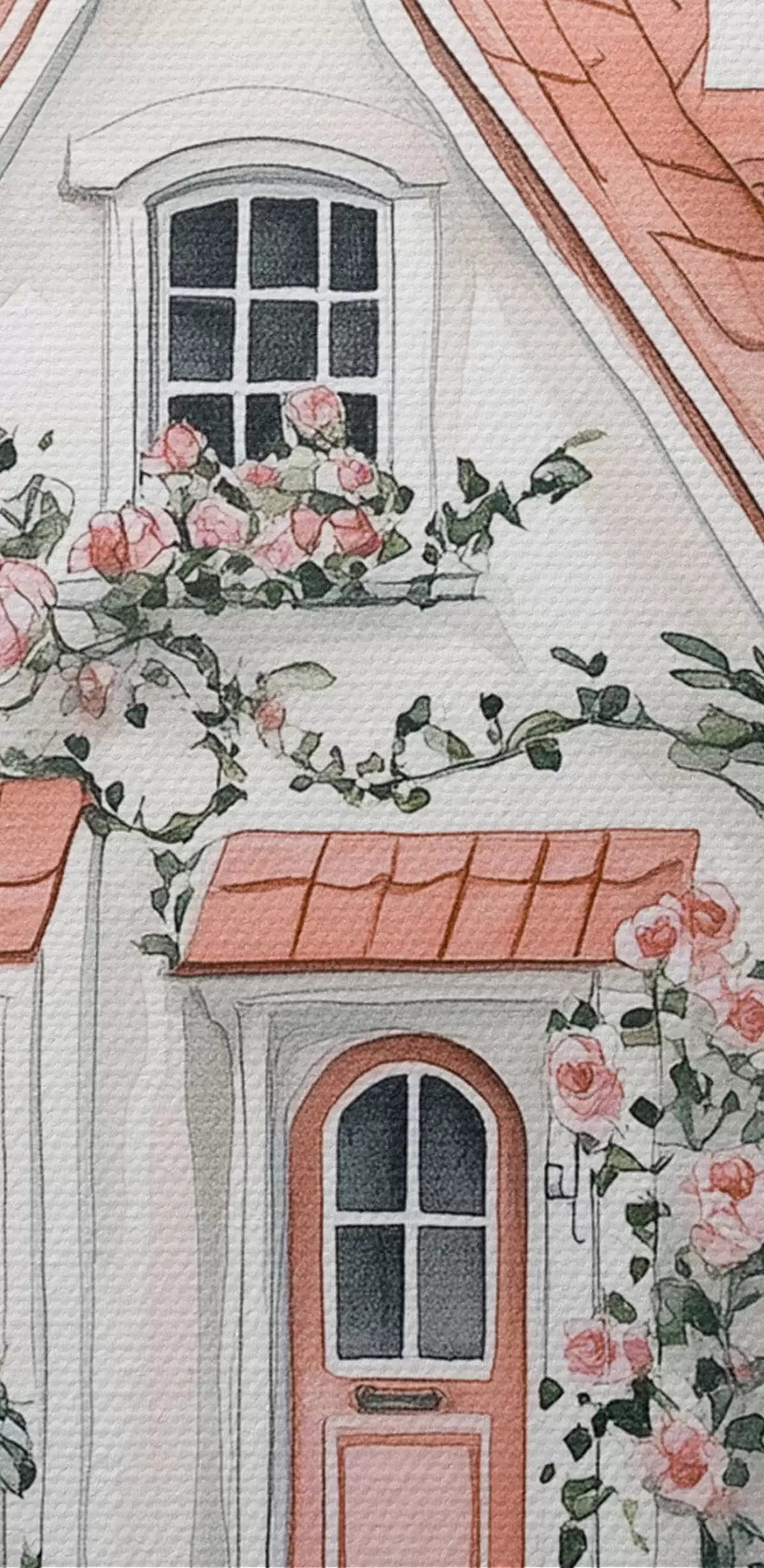 Obrázok Biely dom so záhradou ruží v lese Nr r44716