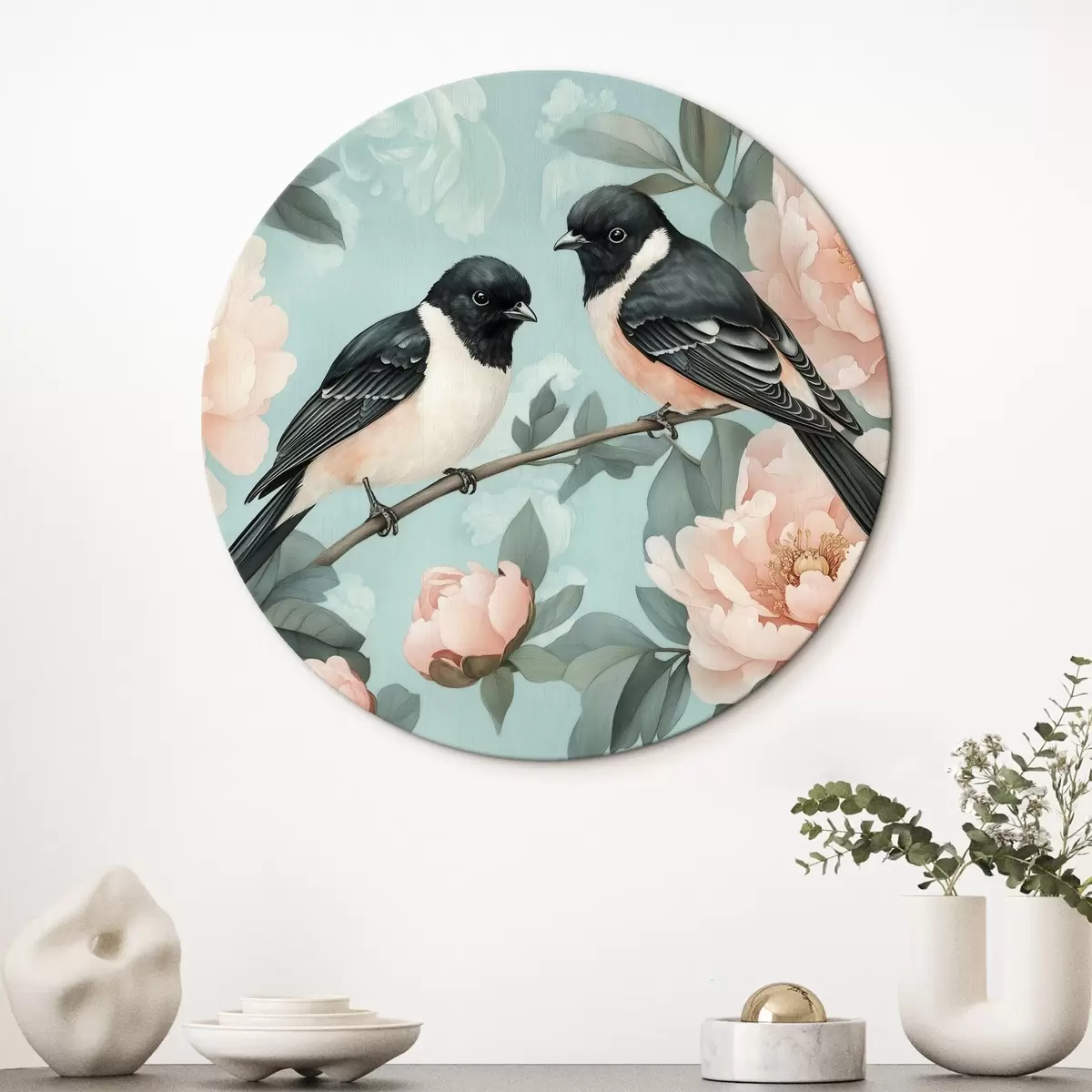 Obrázok Dvaja vtáci na konári s pivonkami Nr r44786
