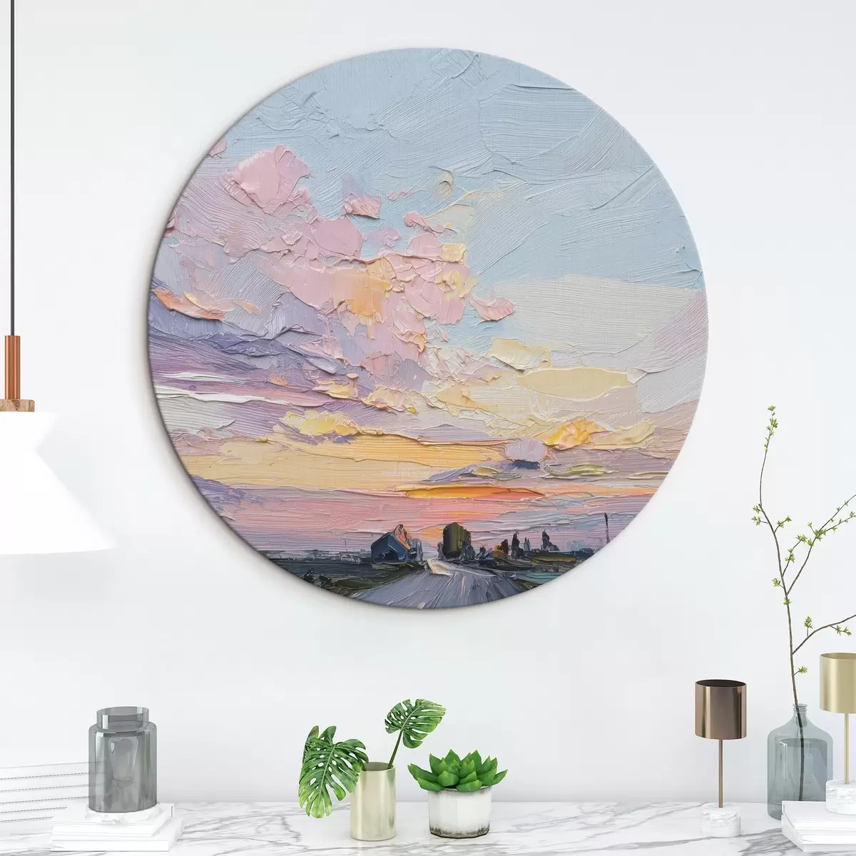 Obrázok Vidiecke krajiny v štýle olejovej kresby, západ slnka Nr r44794