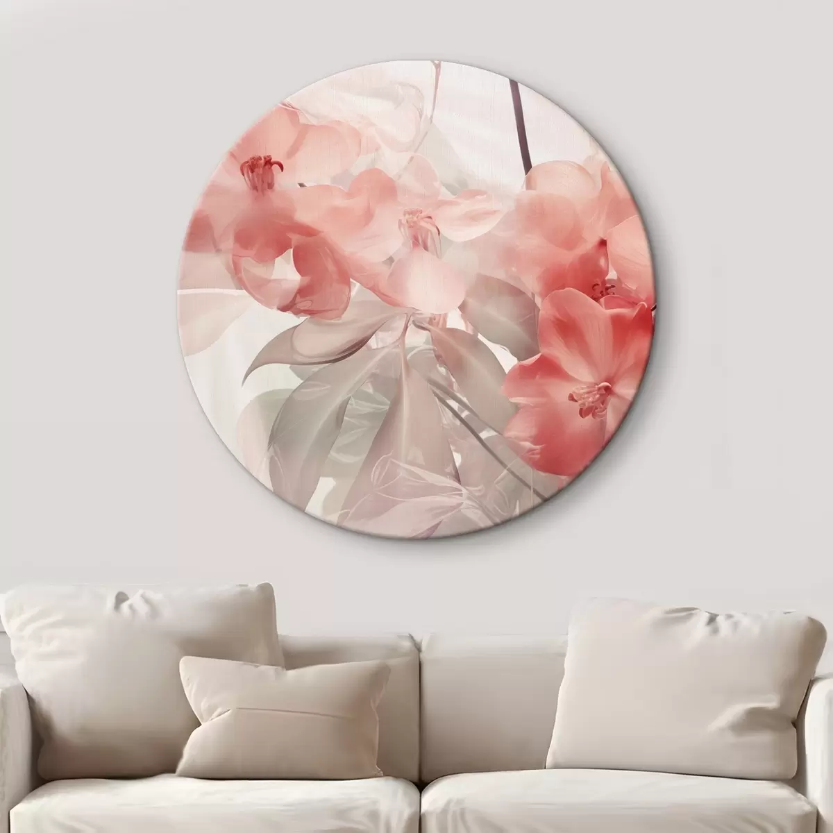 Obrázok Žiarivé ružové tropické kvety s jemnými, tlmenými zelenými listami vytvárajú zasnené jemné textúry Nr r44861