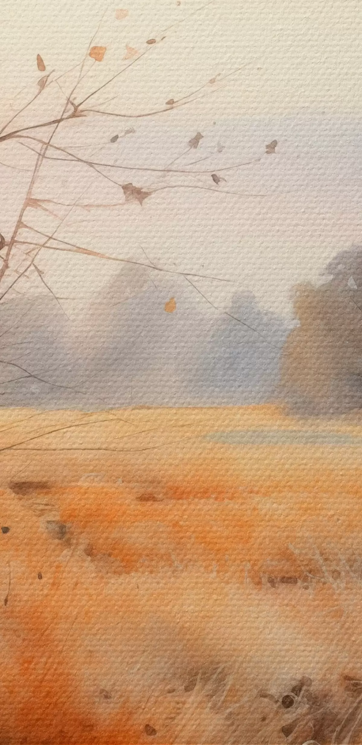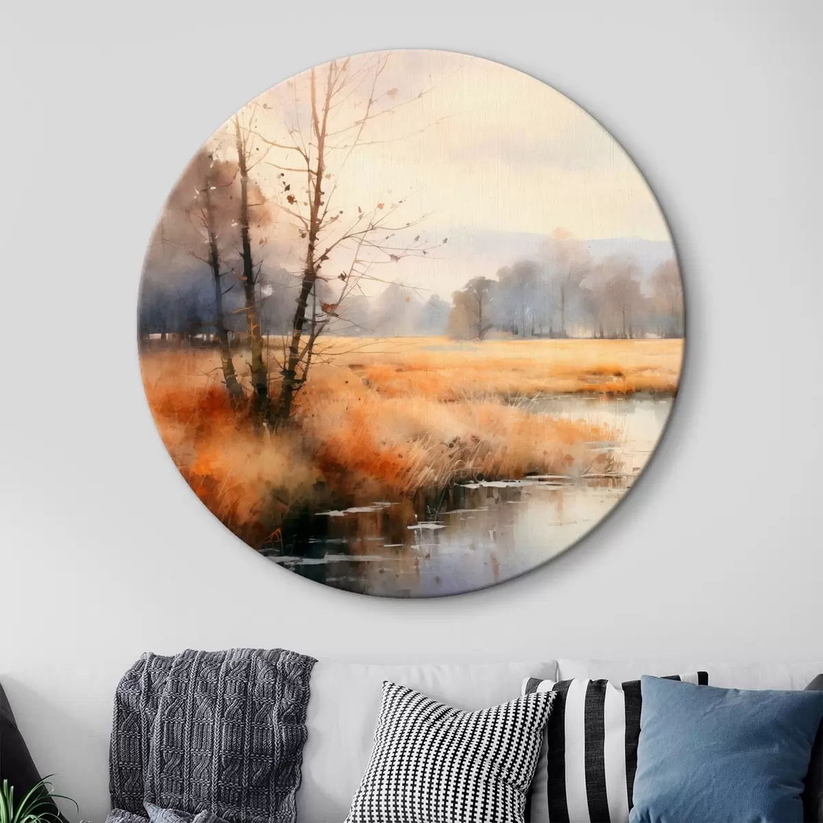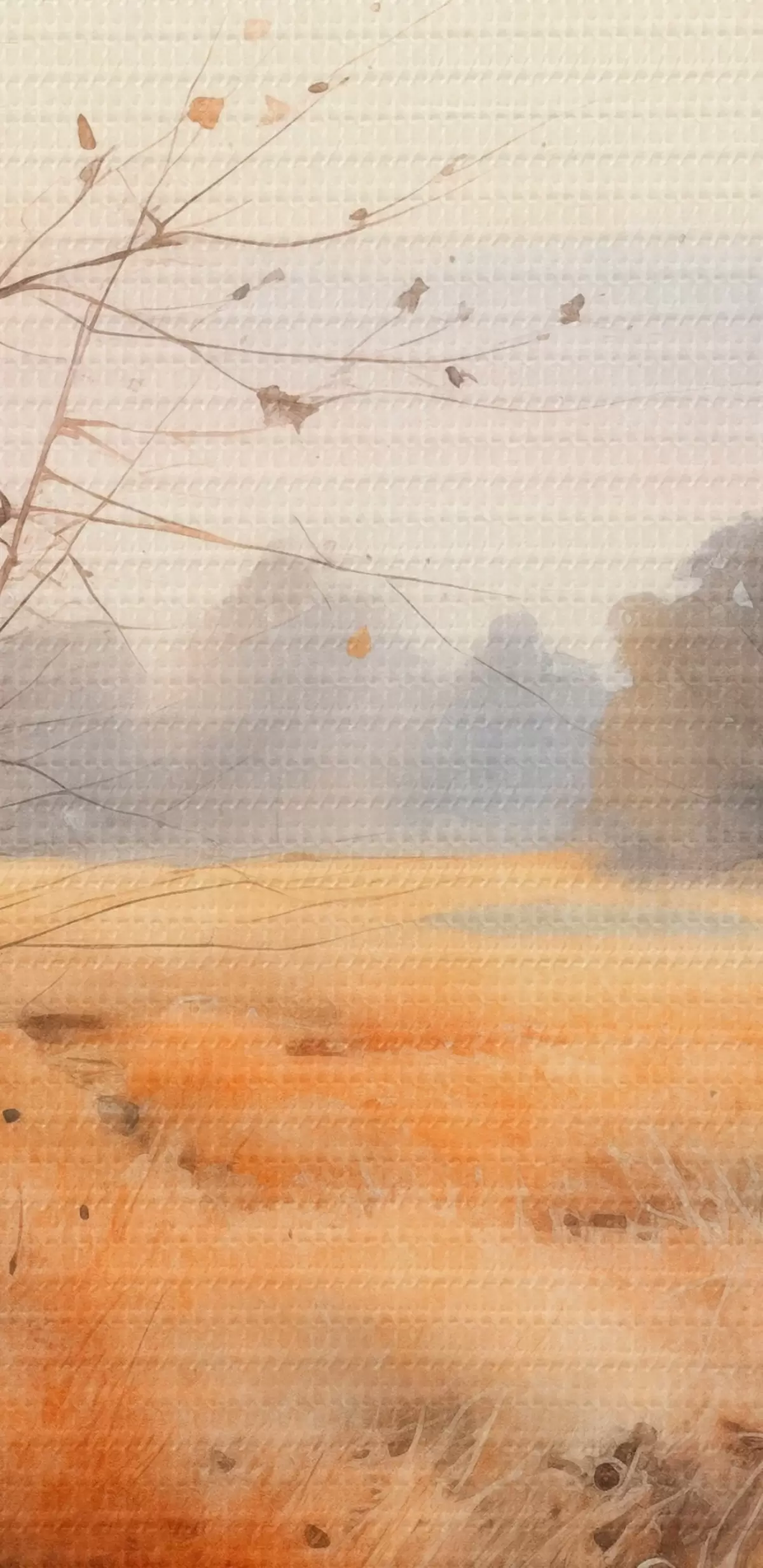 Obrázok Pokojná krajinomaľba s textúrou imitujúca trstinu a holé stromy, pokojnú vodu pod oblohou Nr r44867