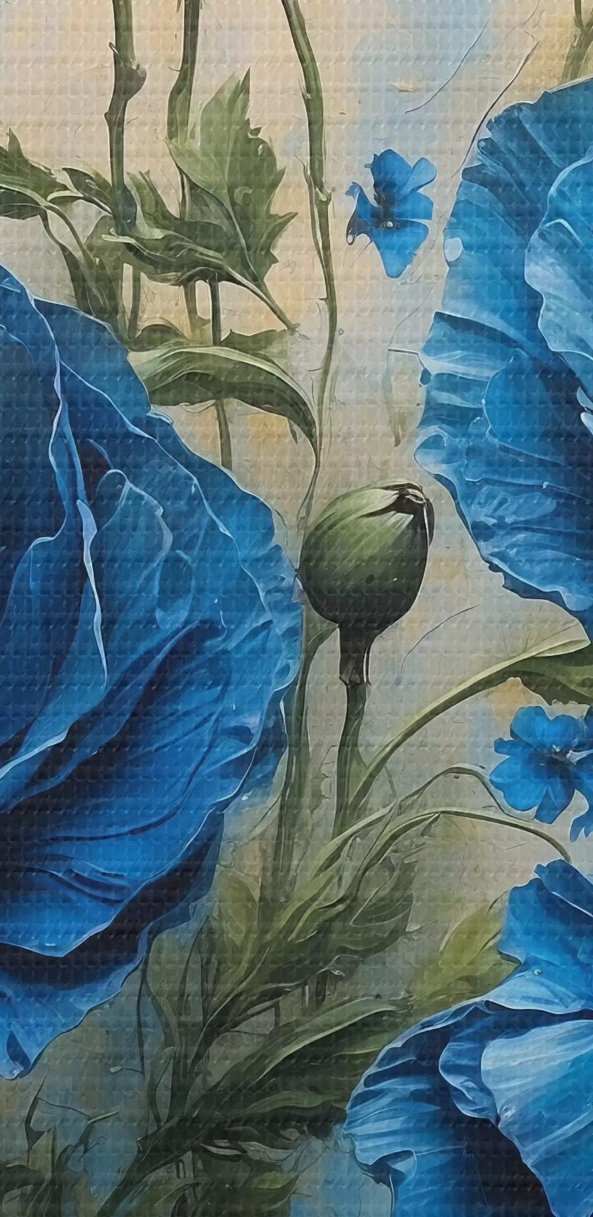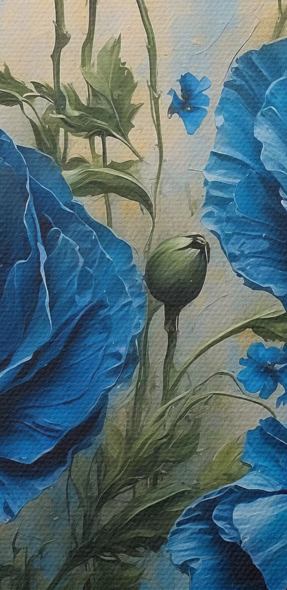 Obrázok Modré maky na pastelovom pozadí s listami Nr r44882