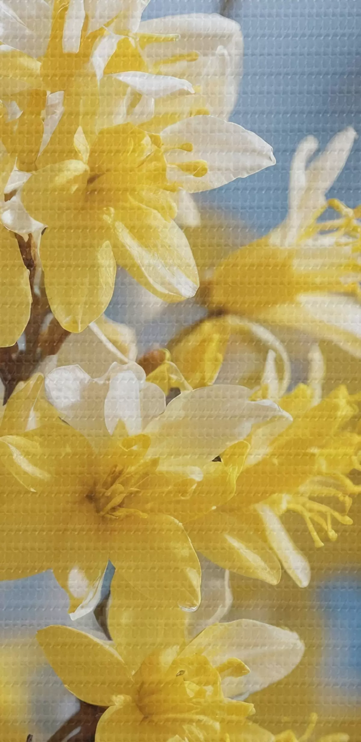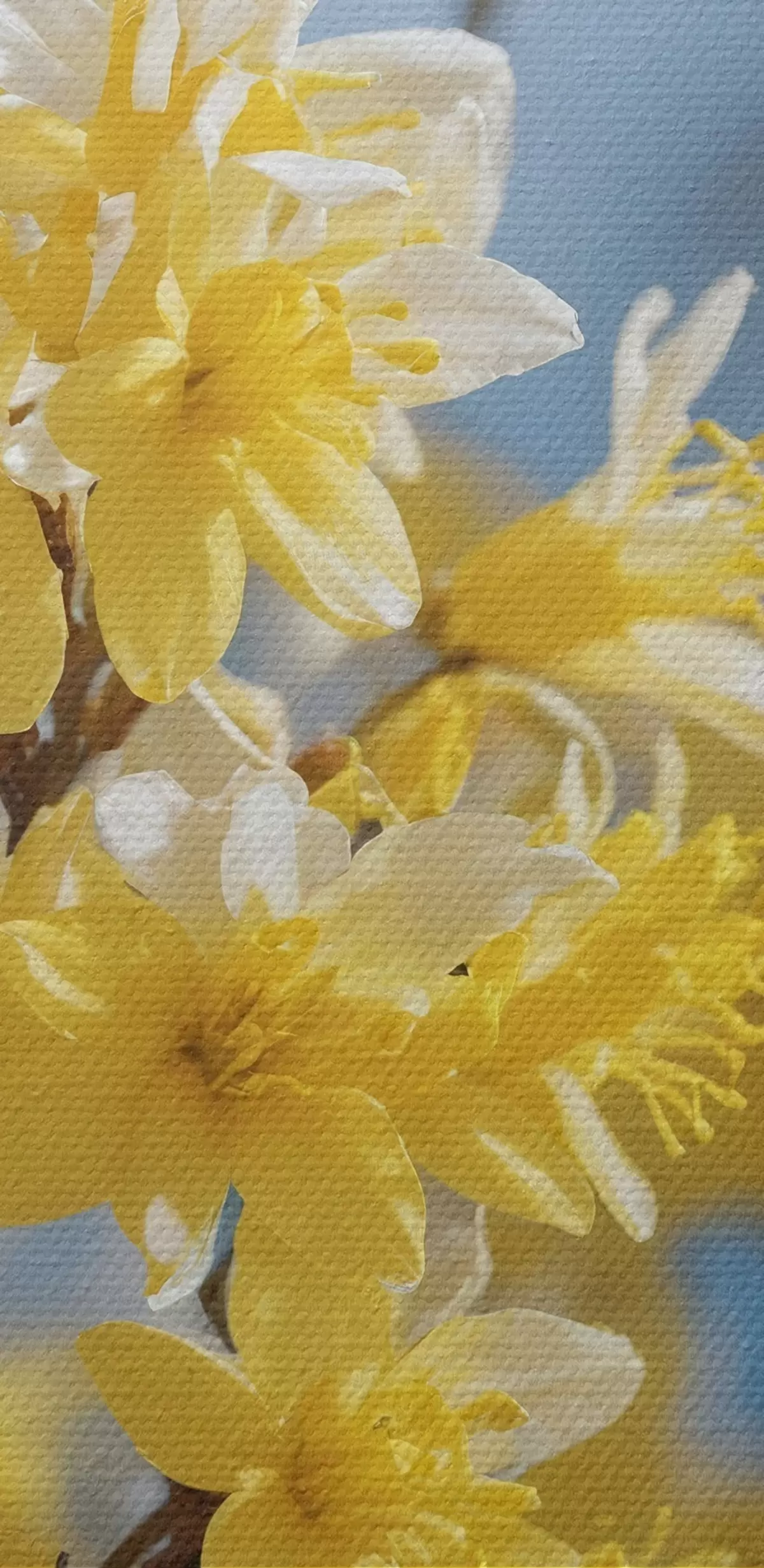 Obrázok Žlté kvety na modrom pozadí s mäkkým zaostrením Nr r44894