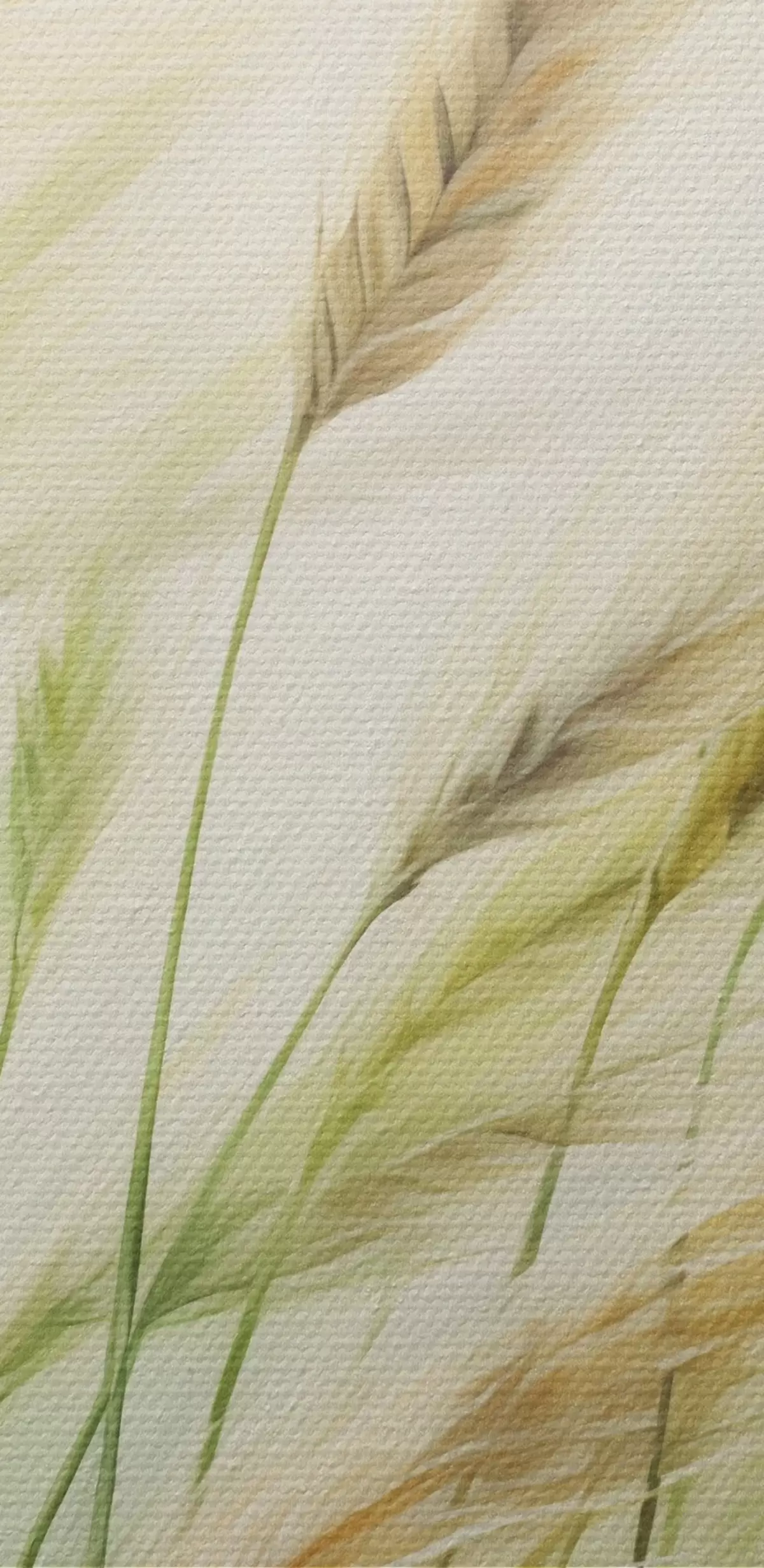 Obrázok Pšeničné pole so žltými a zelenými klasmi, jemné ťahy štetcom a ľahká paleta farieb, prirodzená atmosféra Nr r44923