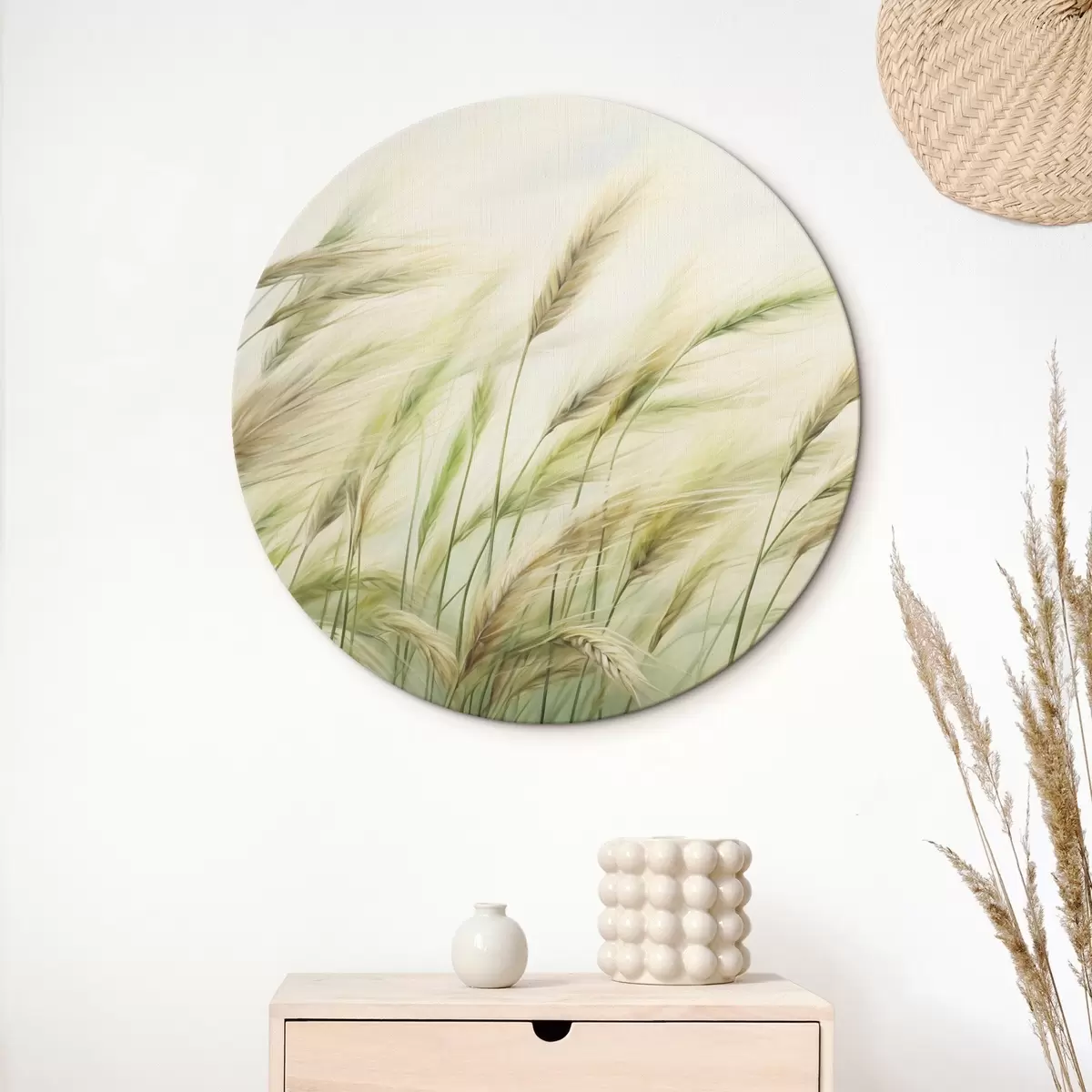 Obrázok Pšeničné pole so žltými a zelenými klasmi, jemné ťahy štetcom a ľahká paleta farieb, prirodzená atmosféra Nr r44923