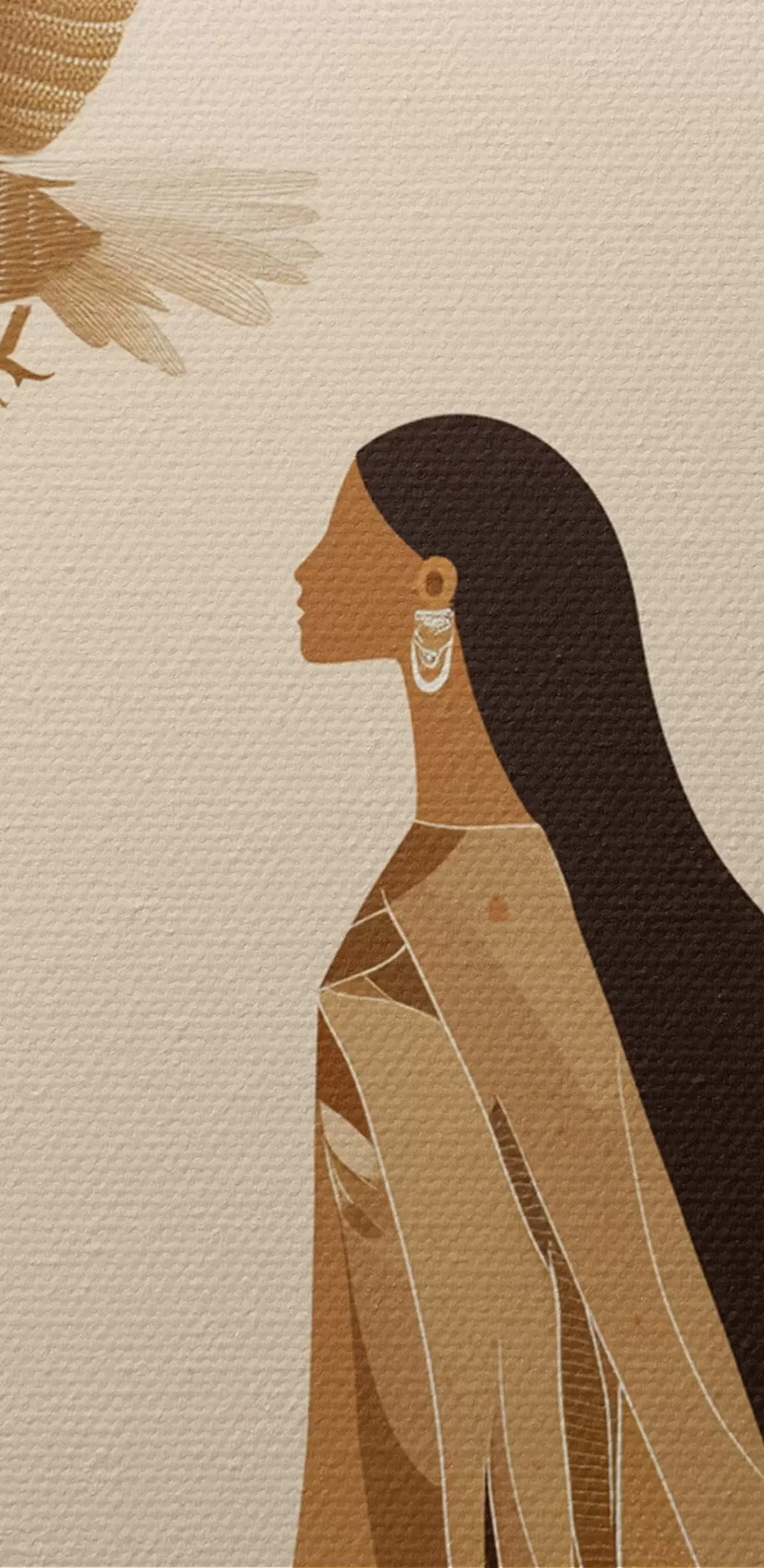 Obrázok Abstrakcia so ženou a orlom na oblohe, béžové farby Nr r44978
