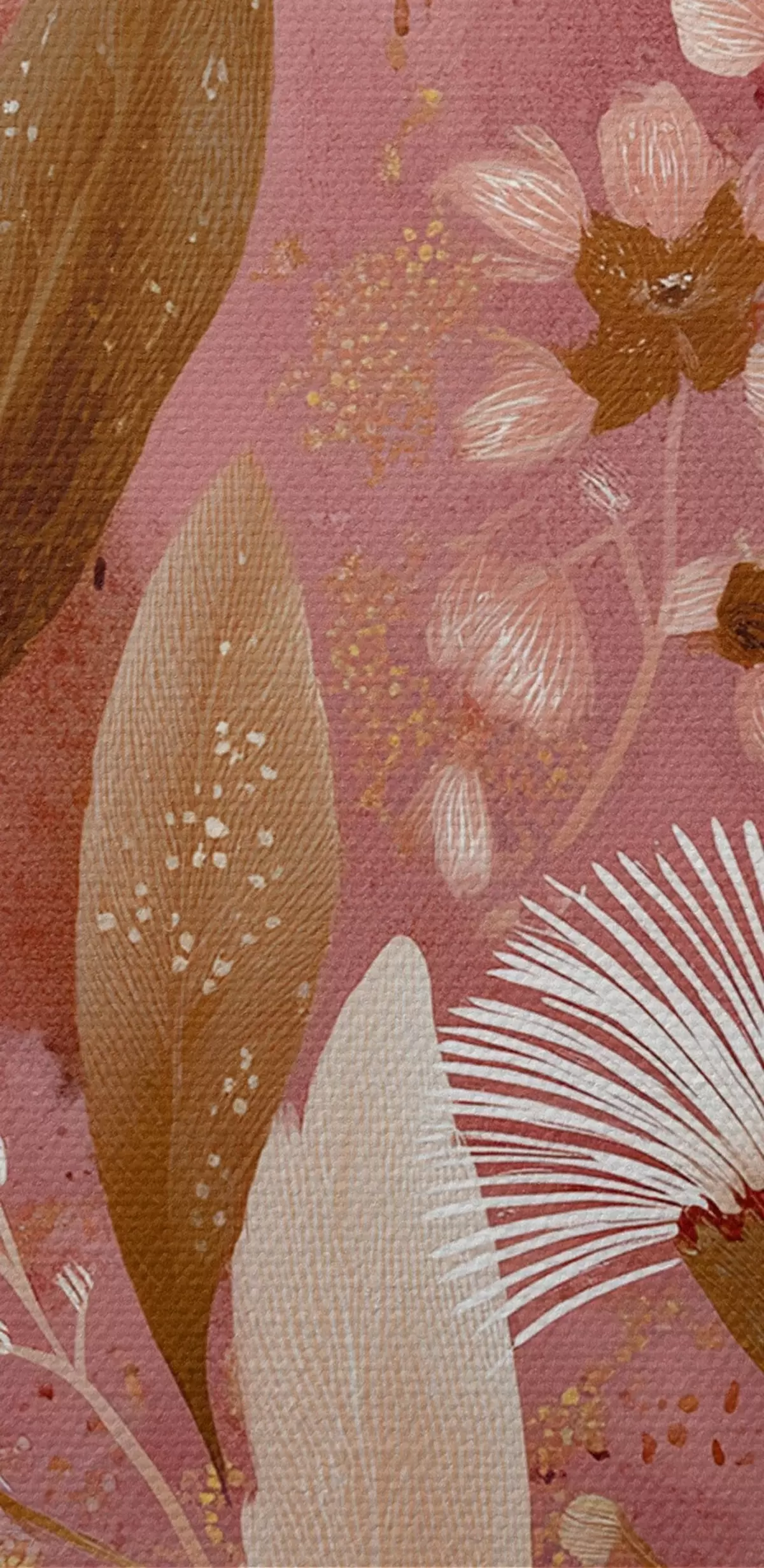 Obrázok Biele kvety v boho štýle na červenom pozadí, detailná kresba Nr r44979