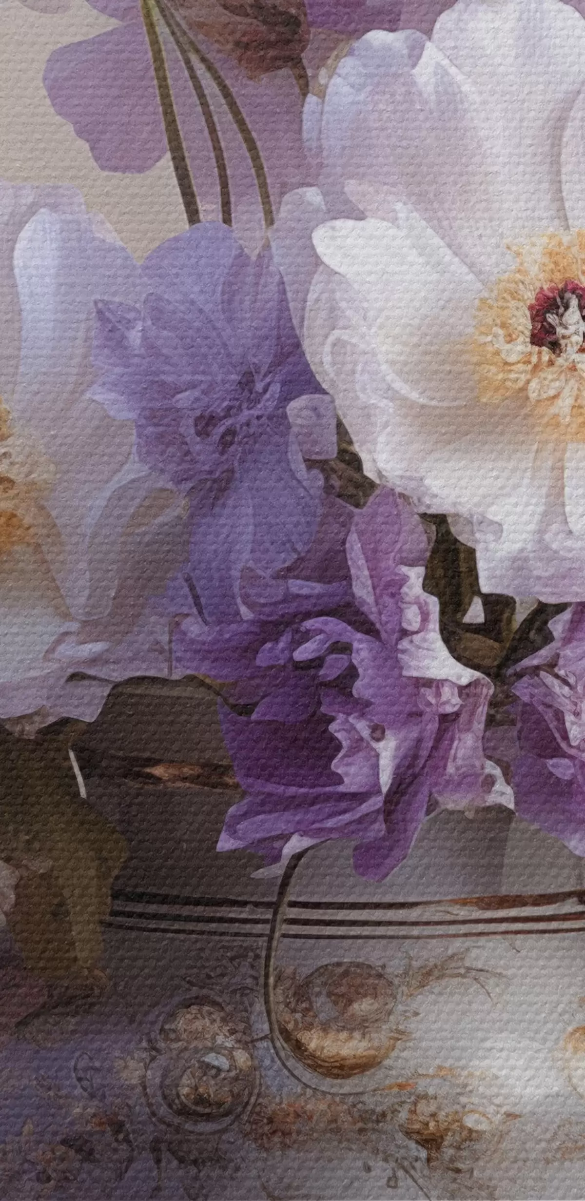 Obrázok Kvetinové zátišie: biele a fialové kvety v umeleckom štýle Nr r45058