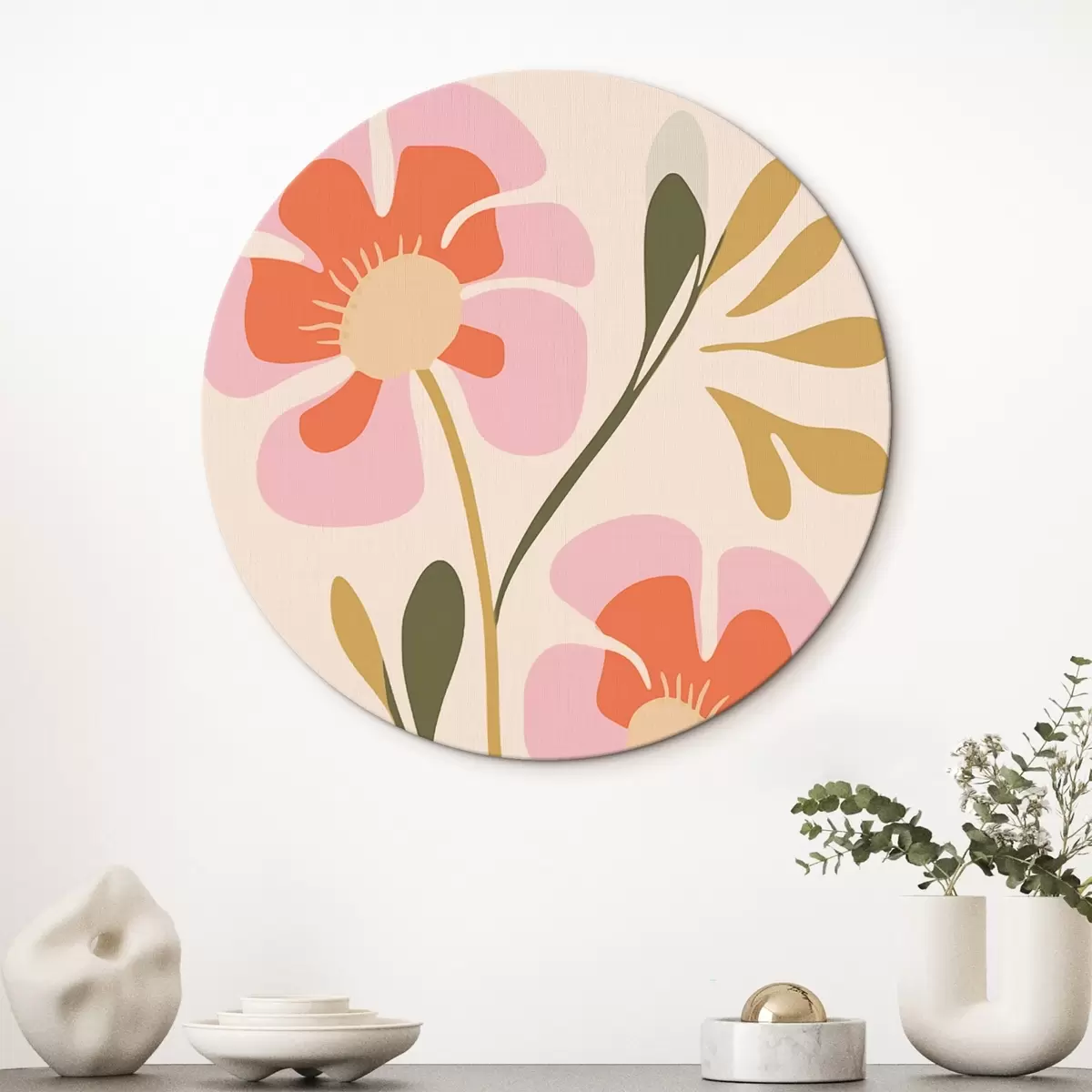 Obrázok Štylizované ružové a oranžové kvety so zelenými listami Nr r45140