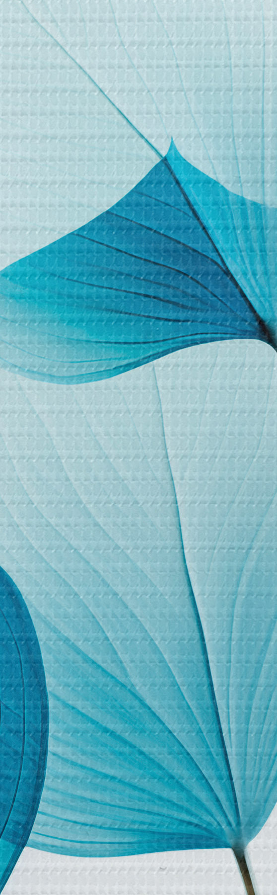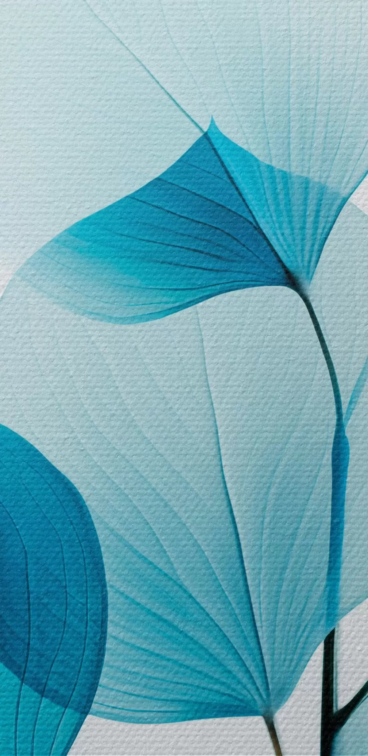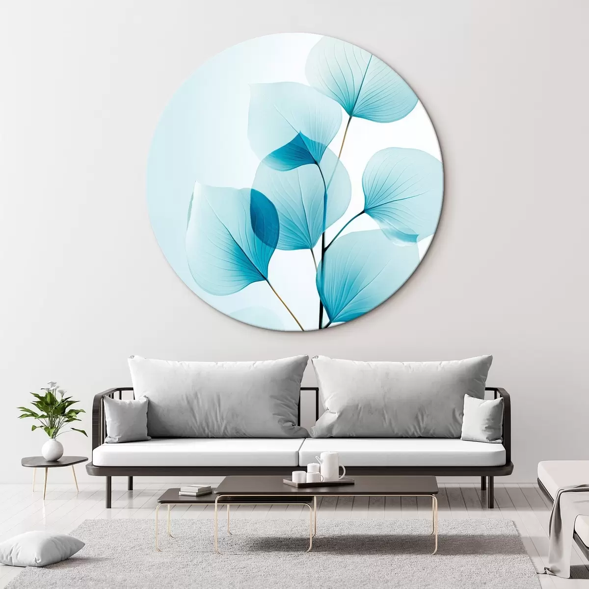 Obrázok Vetva s priesvitnými modrými listami, viditeľné jemné žilky, ľahká a pokojná kompozícia, minimalistická estetika Nr r45175